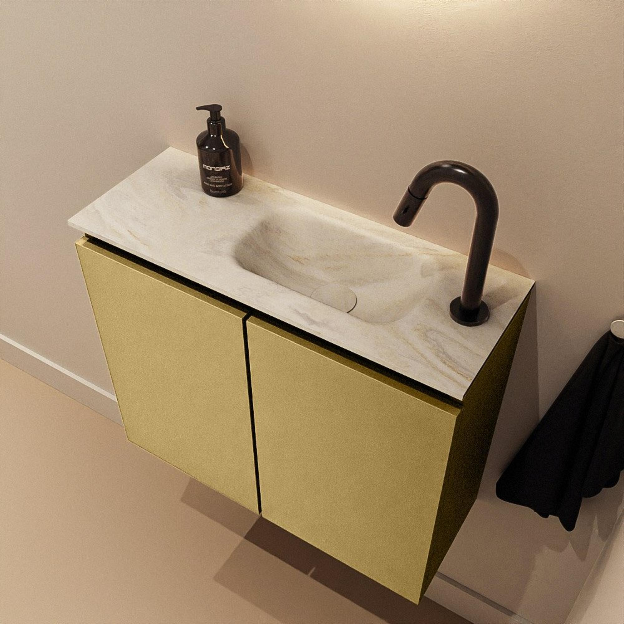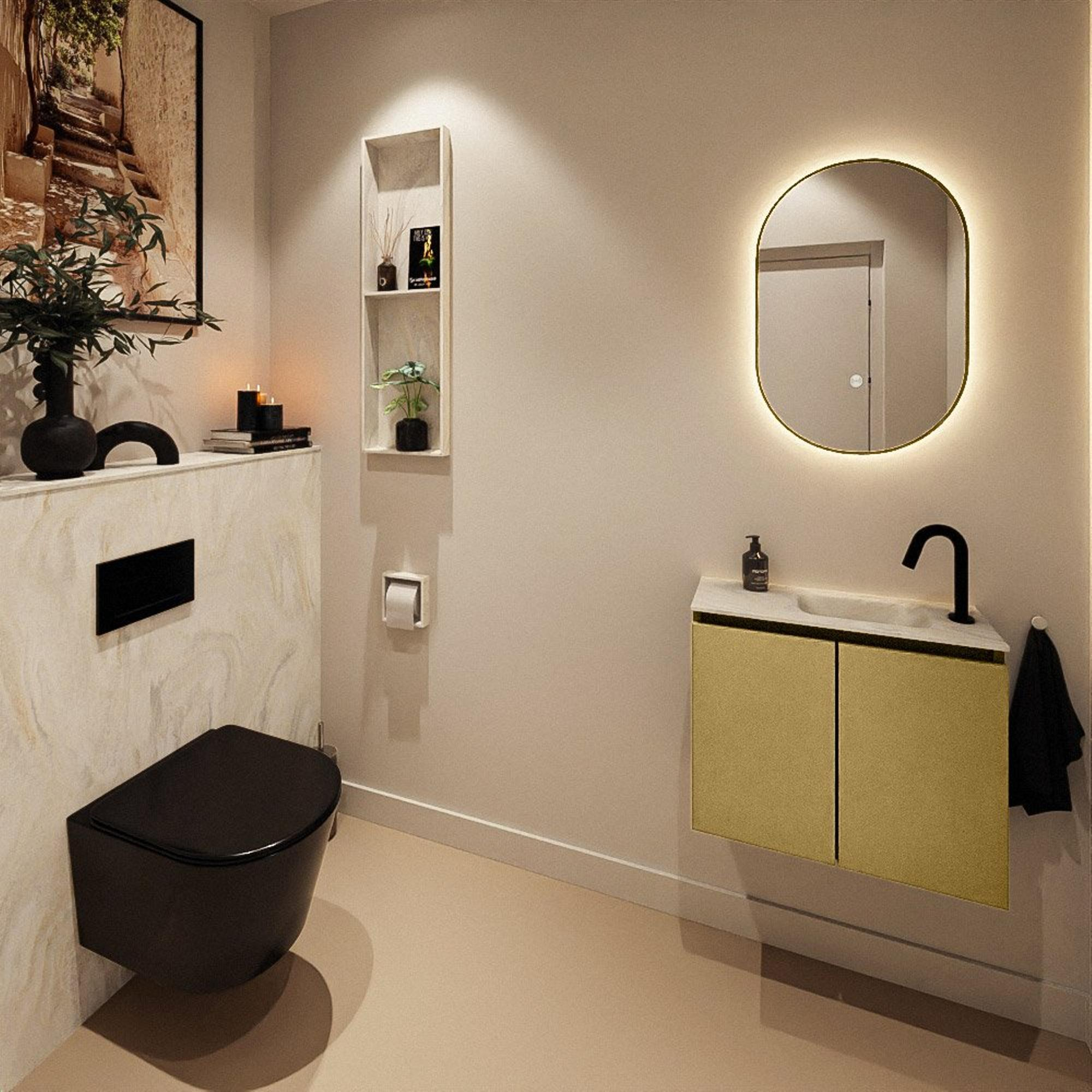 MONDIAZ TURE-DLUX 60cm toiletmeubel Oro. EDEN wastafel Ostra positie rechts. Met 1 kraangat.