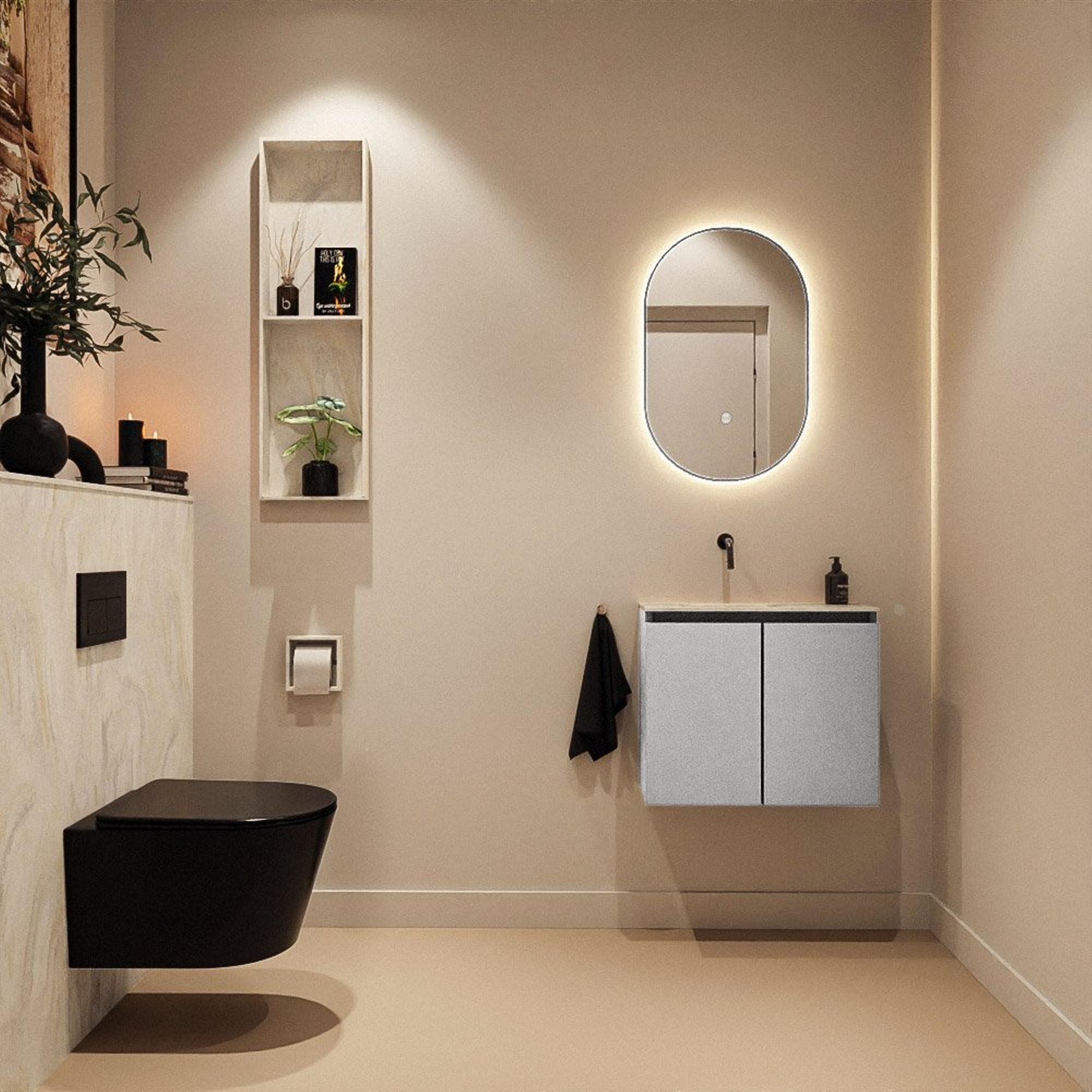 MONDIAZ TURE-DLUX 60cm toiletmeubel Plata. EDEN wastafel Ostra positie links. Zonder kraangat.