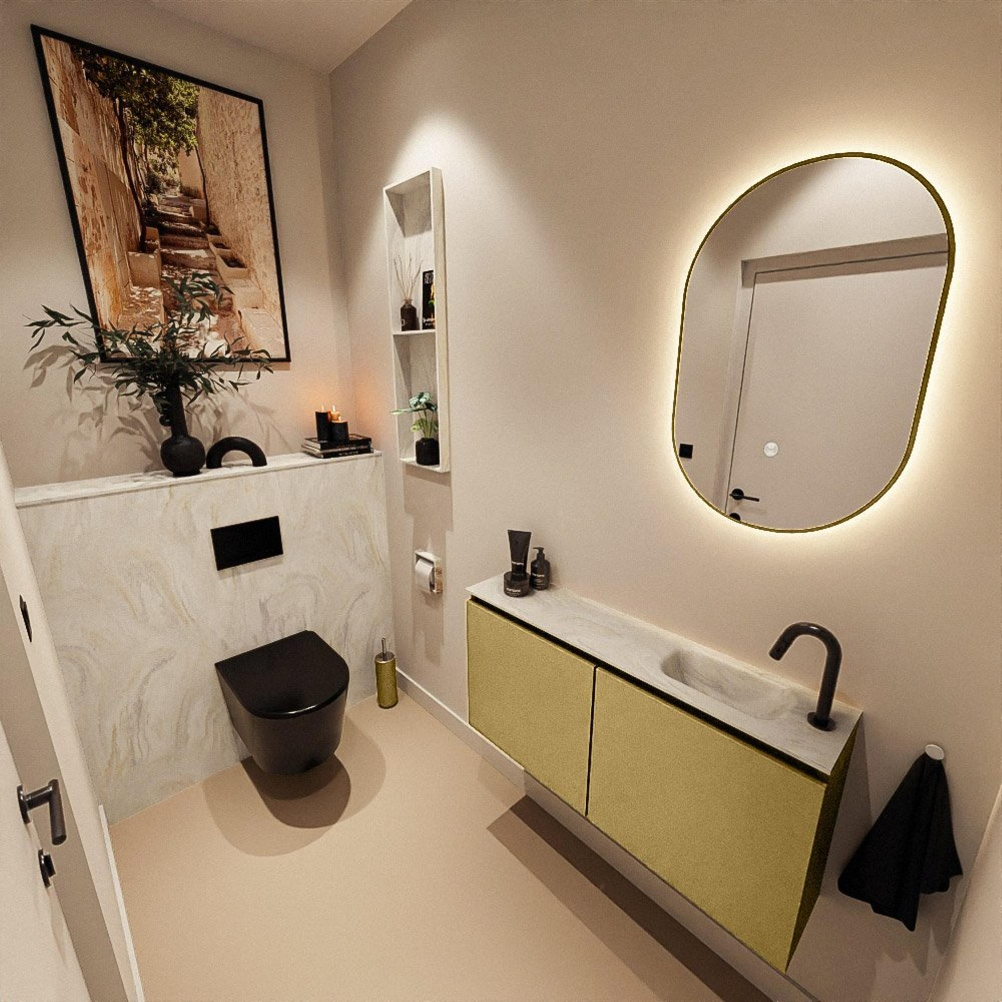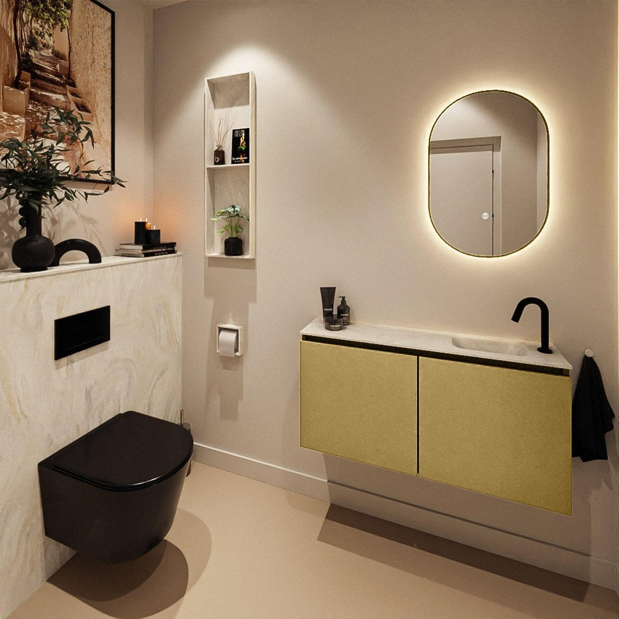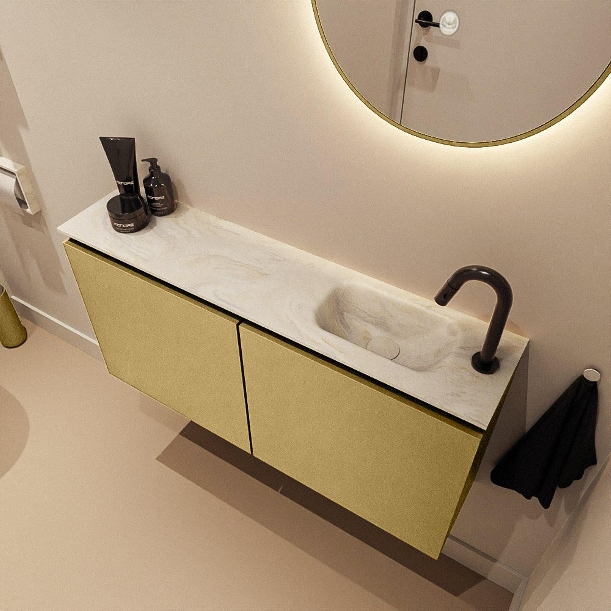 MONDIAZ TURE-DLUX 100cm toiletmeubel Oro. EDEN wastafel Ostra positie rechts. Met 1 kraangat.