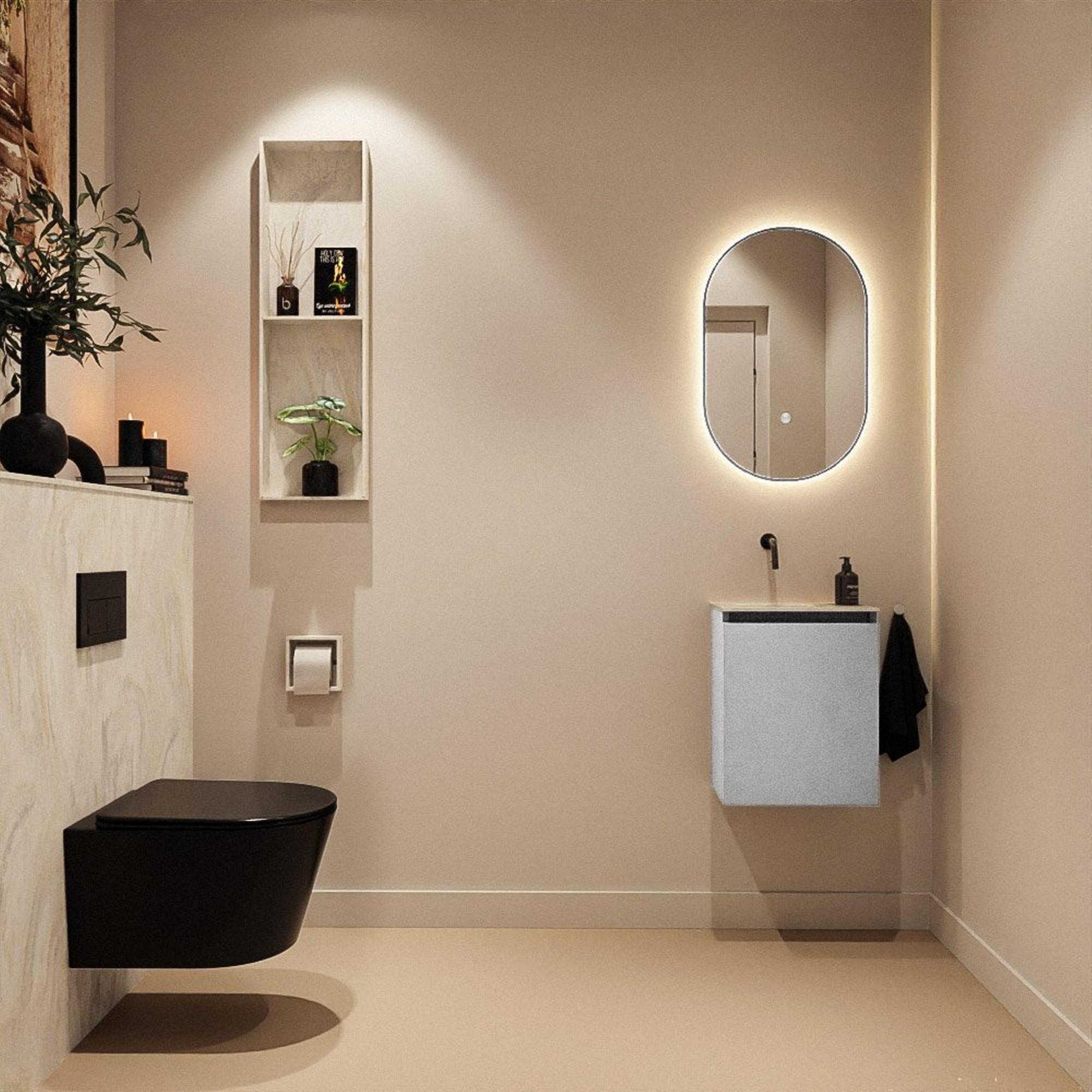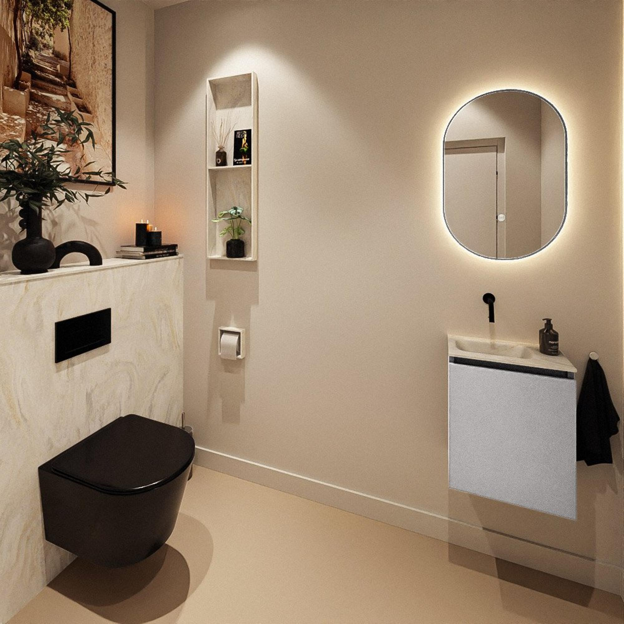 MONDIAZ TURE-DLUX 40cm toiletmeubel Plata. EDEN wastafel Ostra positie links. Zonder kraangat.