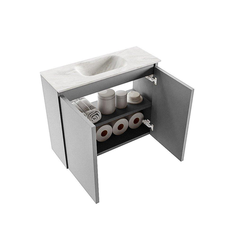 MONDIAZ TURE-DLUX 60cm toiletmeubel Plata. EDEN wastafel Ostra positie midden. Zonder kraangat.