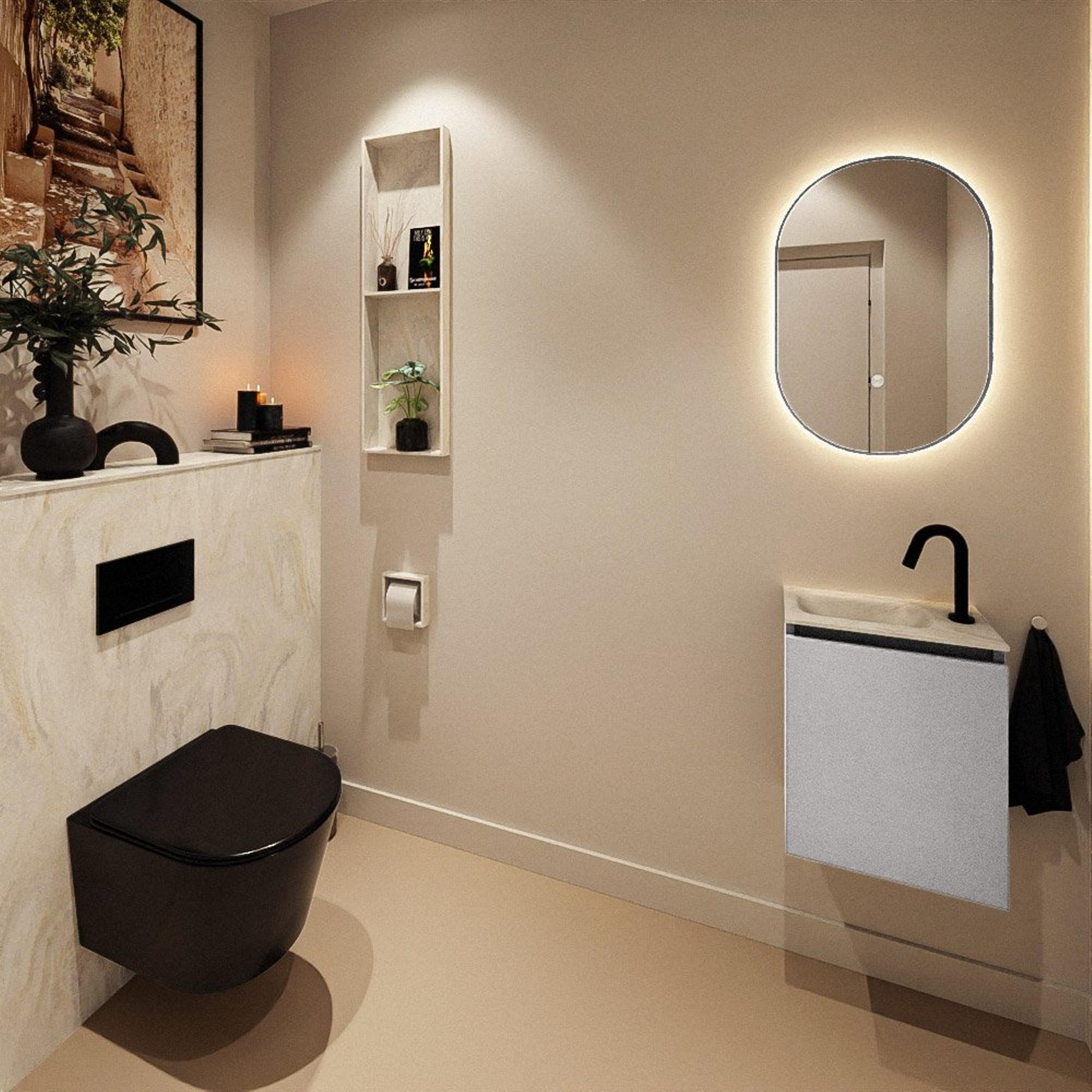 MONDIAZ TURE-DLUX 40cm toiletmeubel Plata. EDEN wastafel Ostra positie links. Met 1 kraangat.