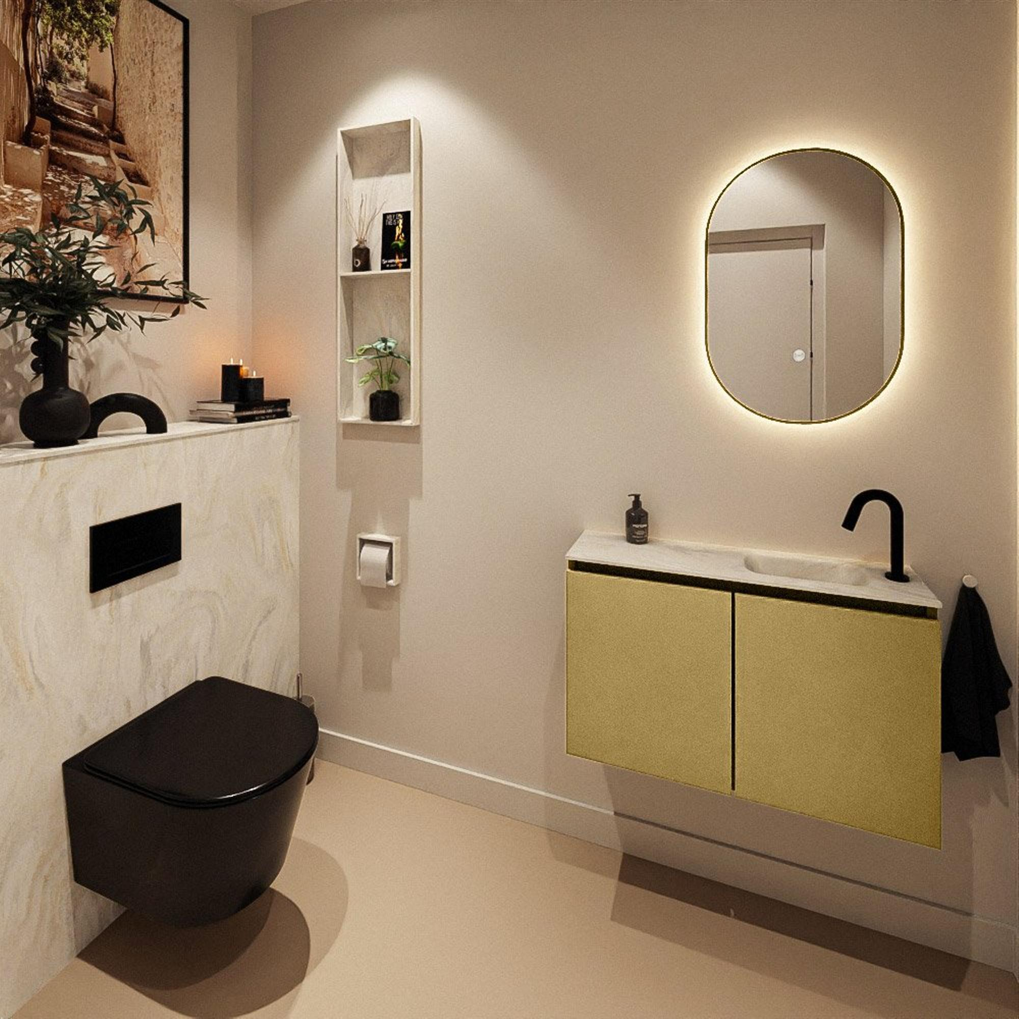 MONDIAZ TURE-DLUX 80cm toiletmeubel Oro. EDEN wastafel Ostra positie rechts. Met 1 kraangat.