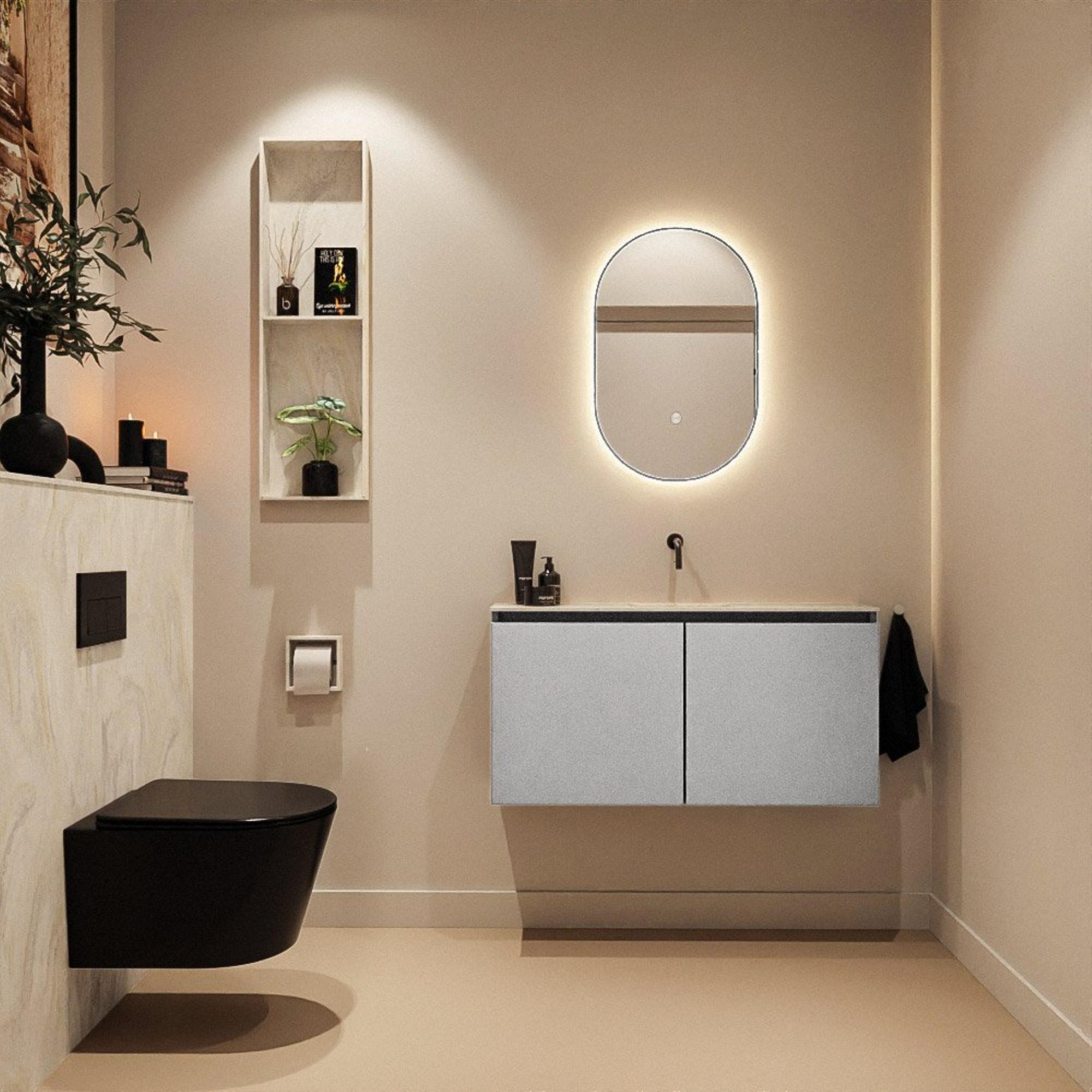 MONDIAZ TURE-DLUX 100cm toiletmeubel Plata. EDEN wastafel Ostra positie midden. Zonder kraangat.