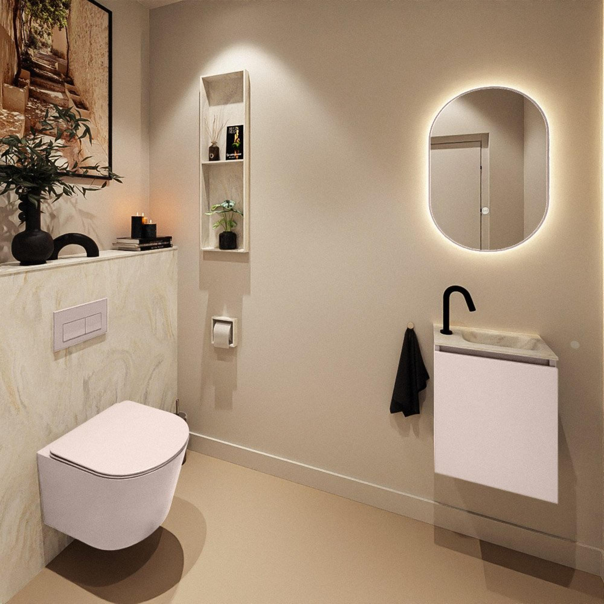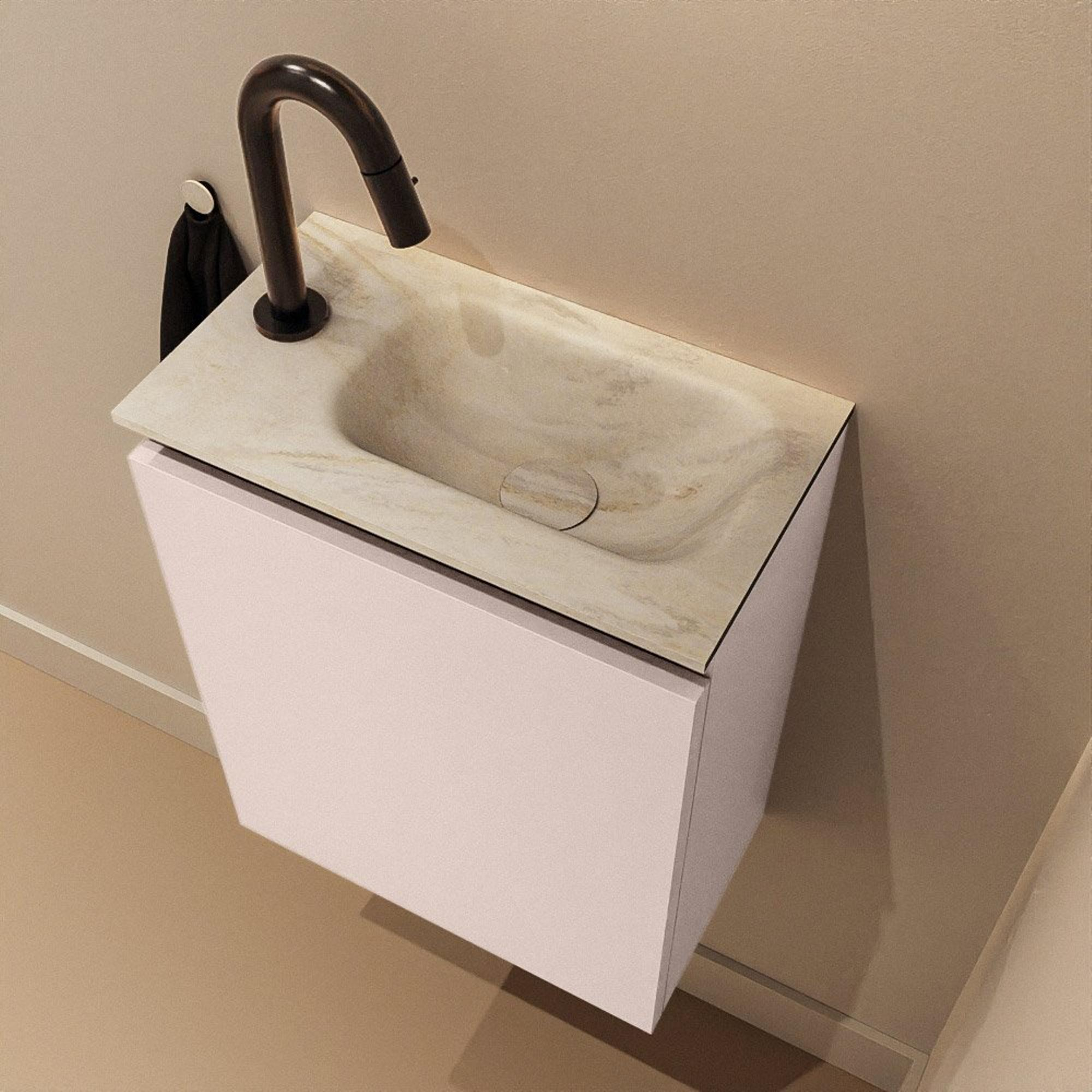 MONDIAZ TURE-DLUX 40cm toiletmeubel Rosee. EDEN wastafel Ostra positie rechts. Met 1 kraangat.