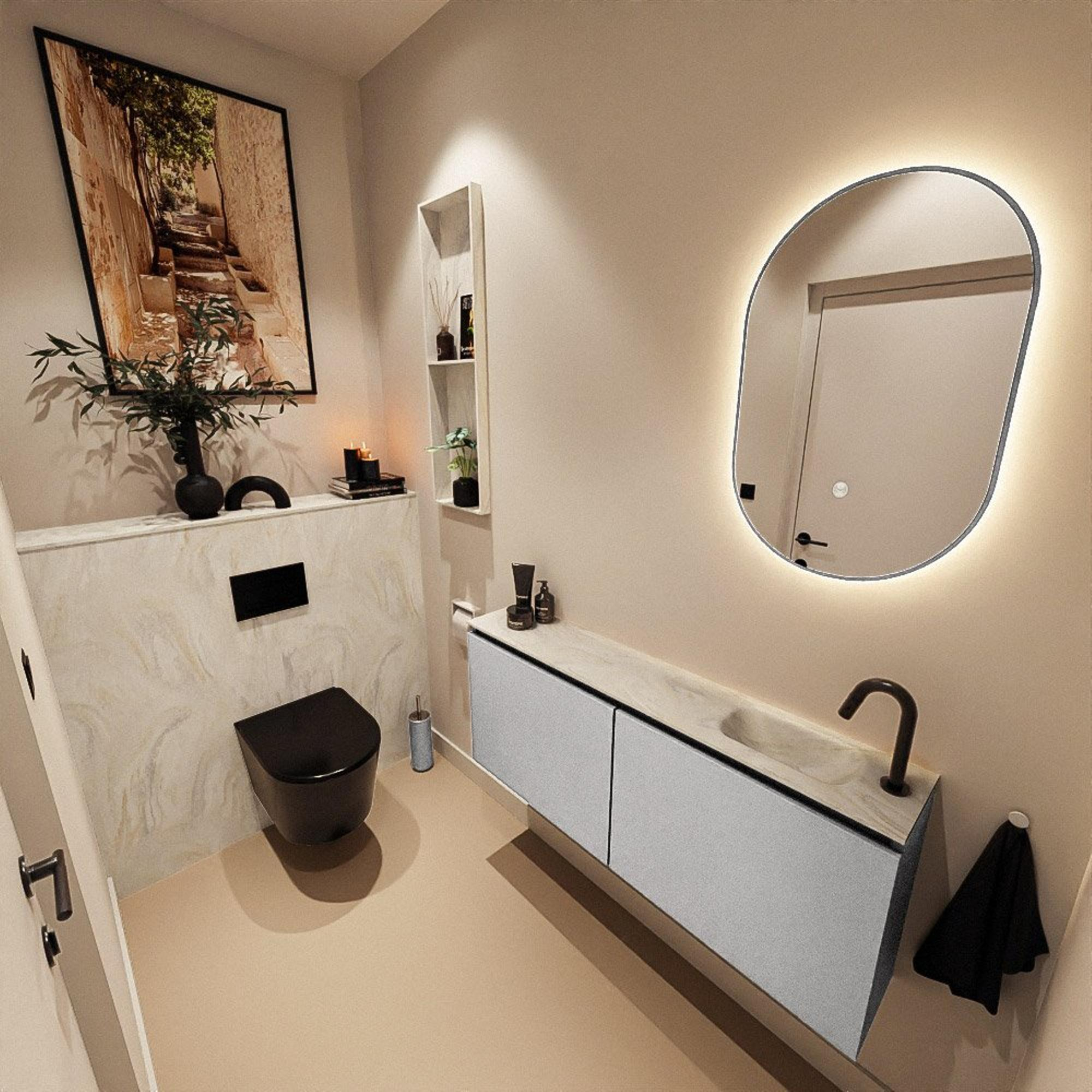 MONDIAZ TURE-DLUX 120cm toiletmeubel Plata. EDEN wastafel Ostra positie rechts. Met 1 kraangat.