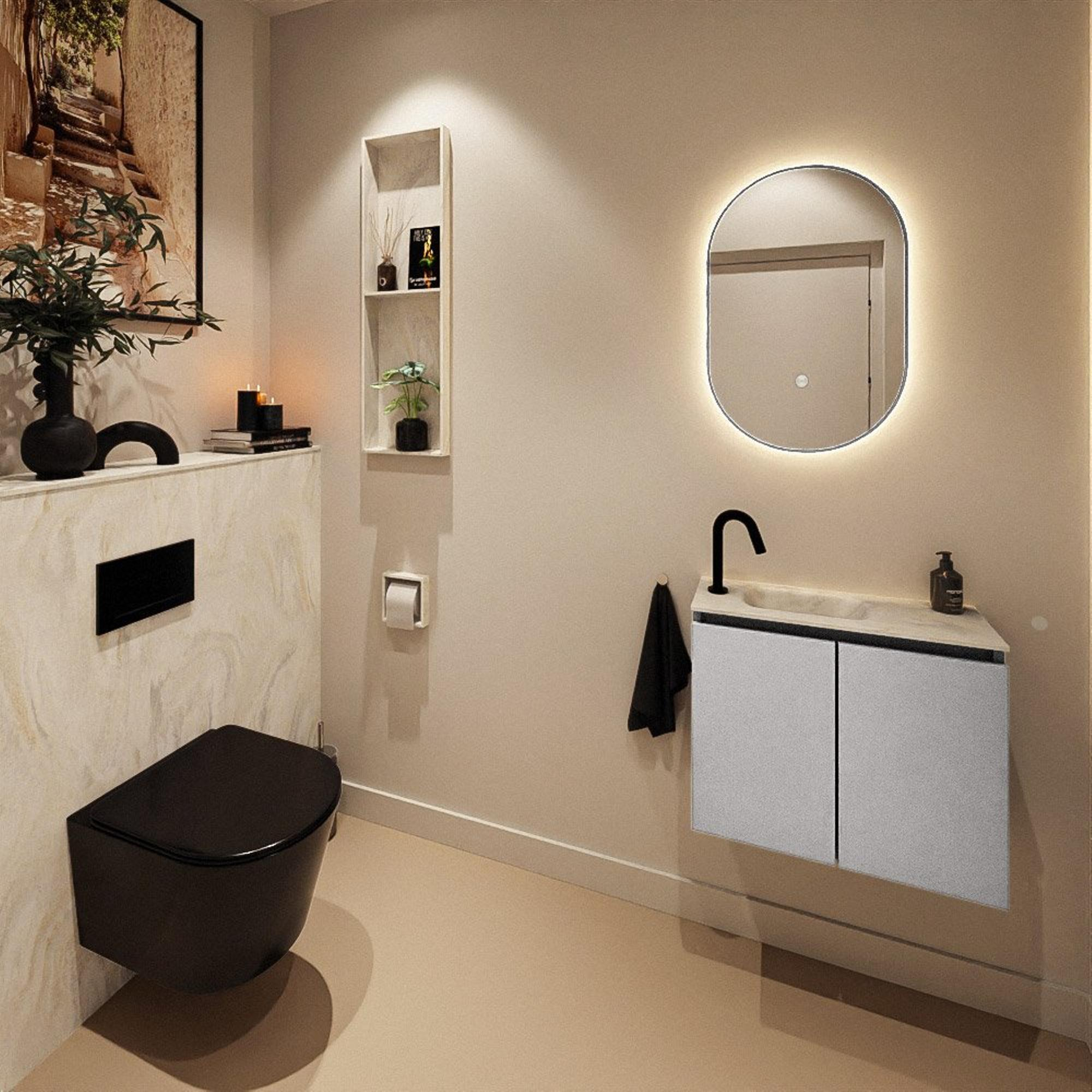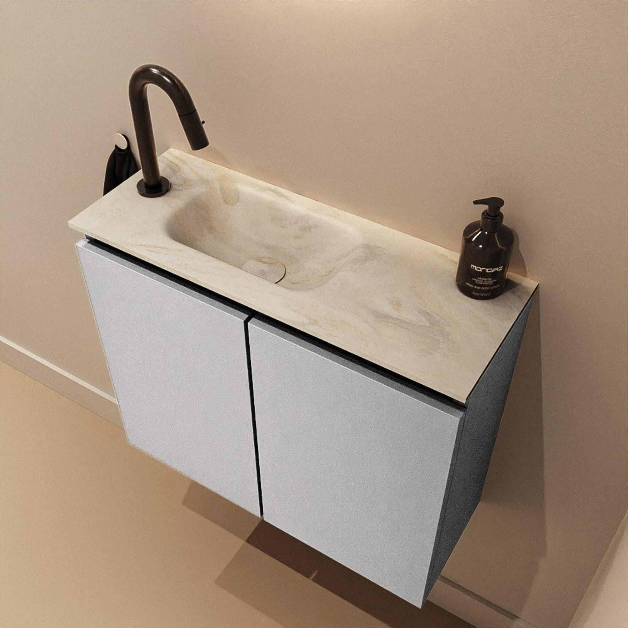 MONDIAZ TURE-DLUX 60cm toiletmeubel Plata. EDEN wastafel Ostra positie links. Met 1 kraangat.