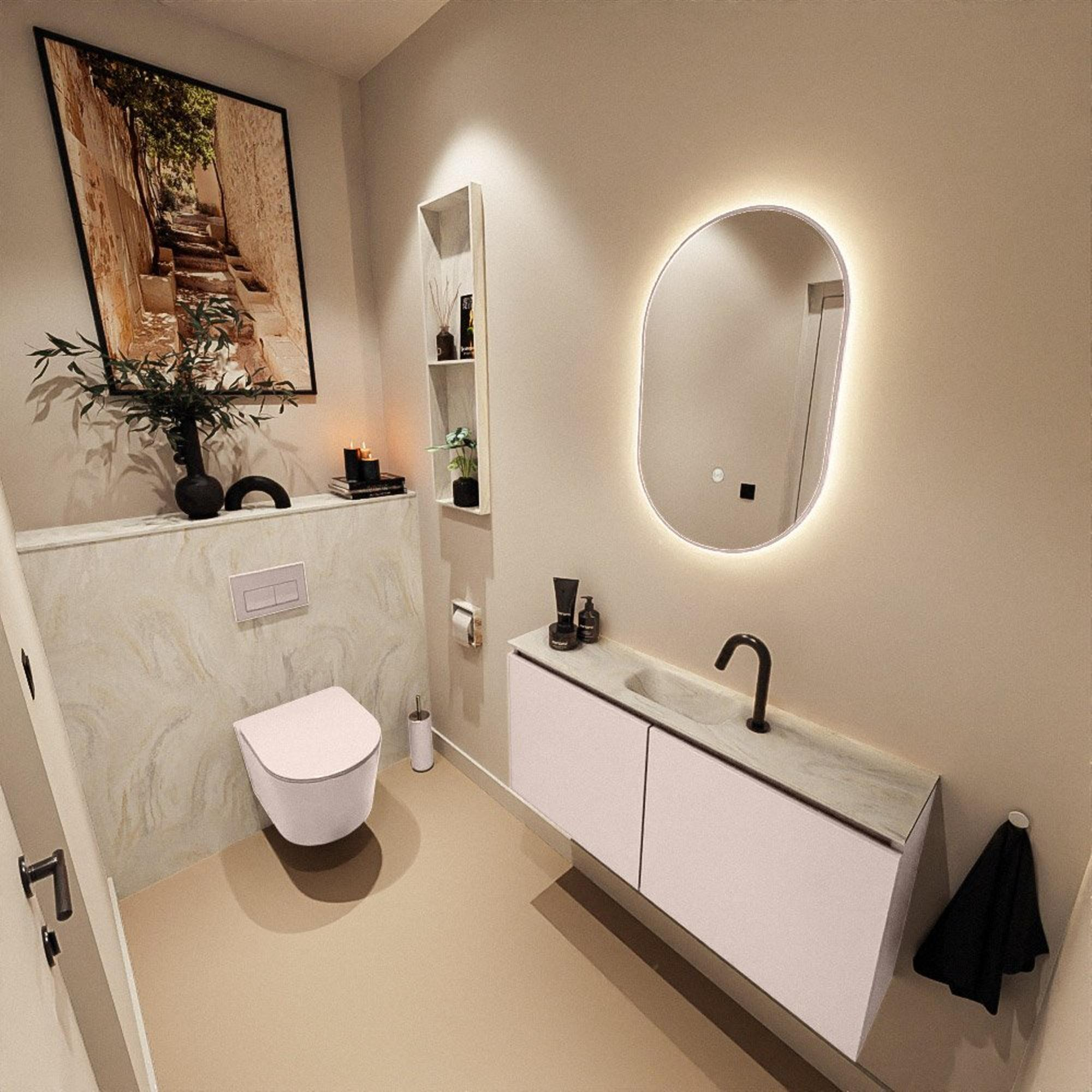 MONDIAZ TURE-DLUX 100cm toiletmeubel Rosee. EDEN wastafel Ostra positie midden. Met 1 kraangat.