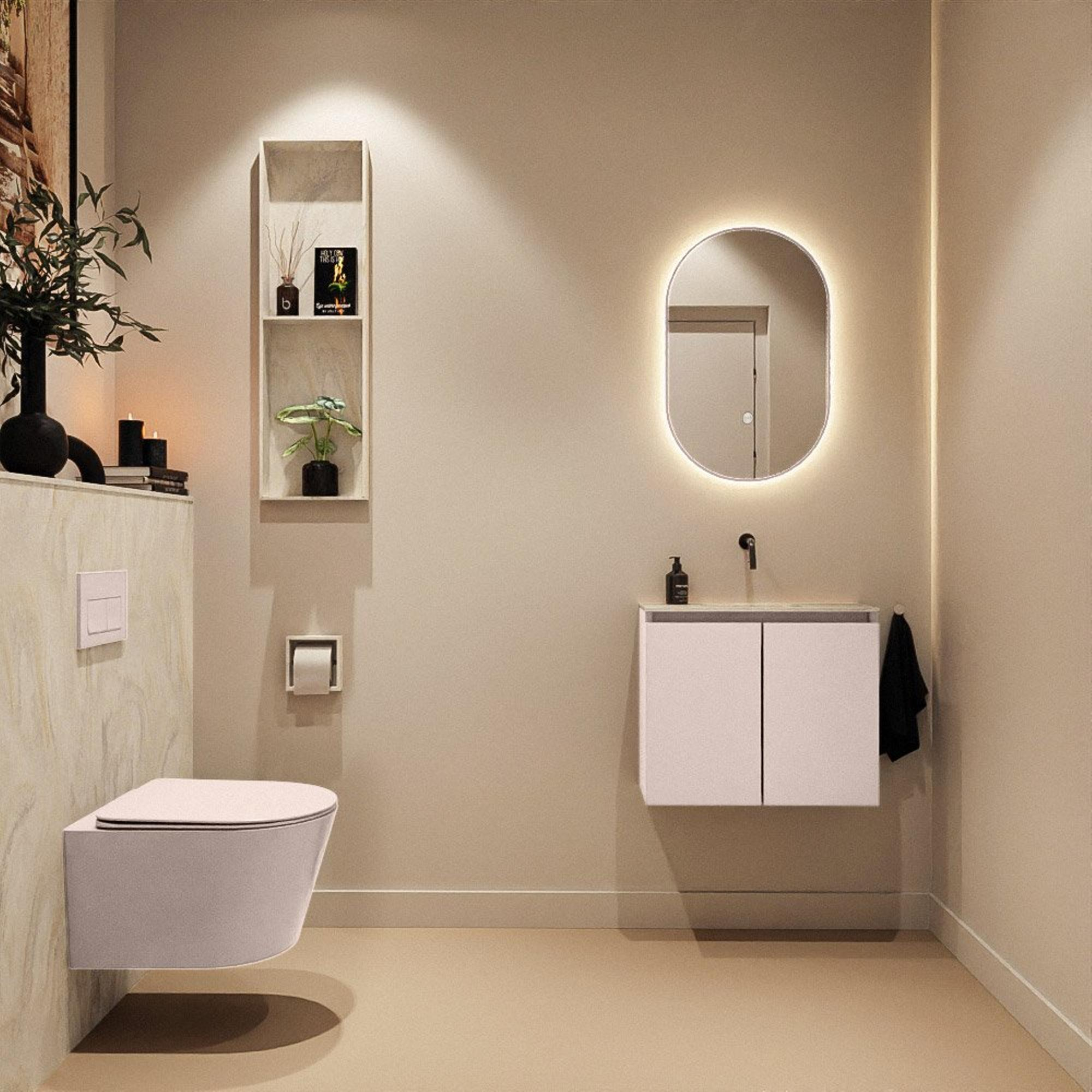 MONDIAZ TURE-DLUX 60cm toiletmeubel Rosee. EDEN wastafel Ostra positie midden. Zonder kraangat.
