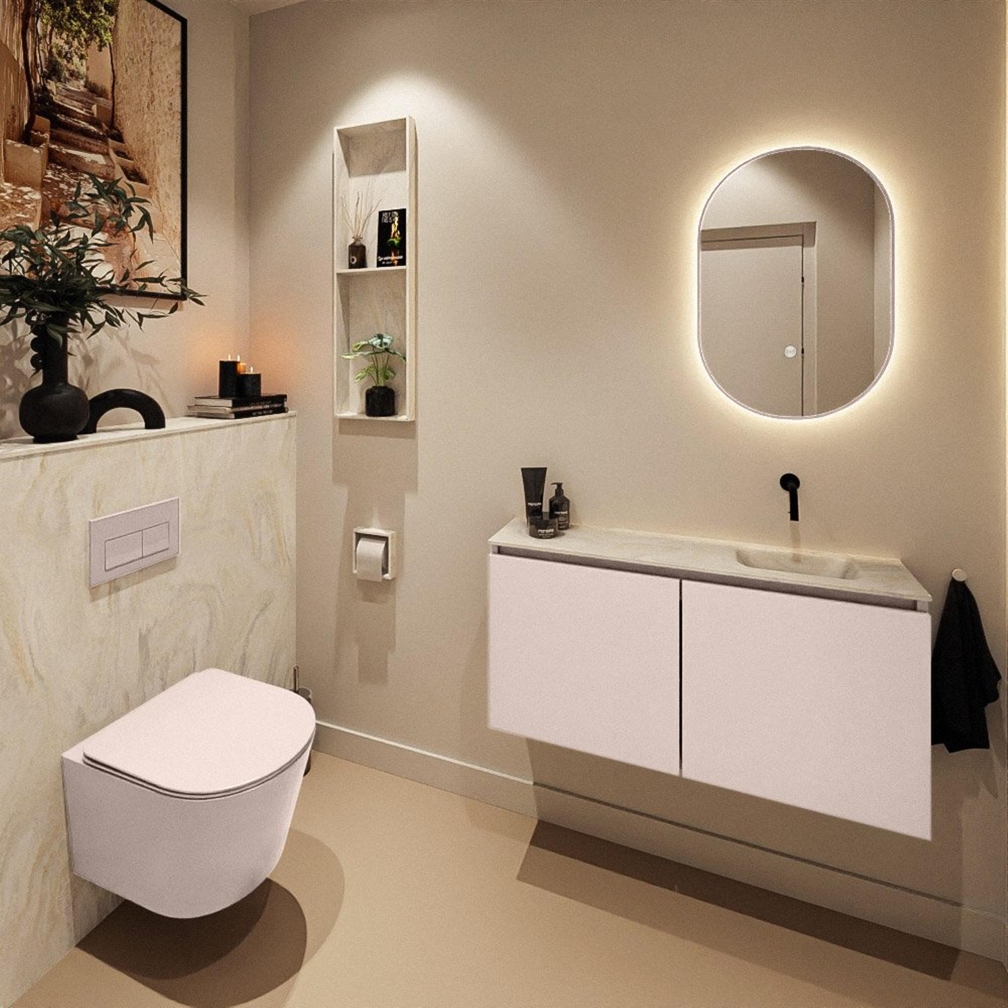 MONDIAZ TURE-DLUX 100cm toiletmeubel Rosee. EDEN wastafel Ostra positie rechts. Zonder kraangat.