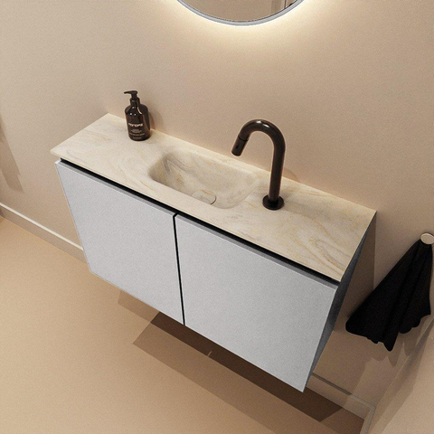 MONDIAZ TURE-DLUX 80cm toiletmeubel Plata. EDEN wastafel Ostra positie midden. Met 1 kraangat.