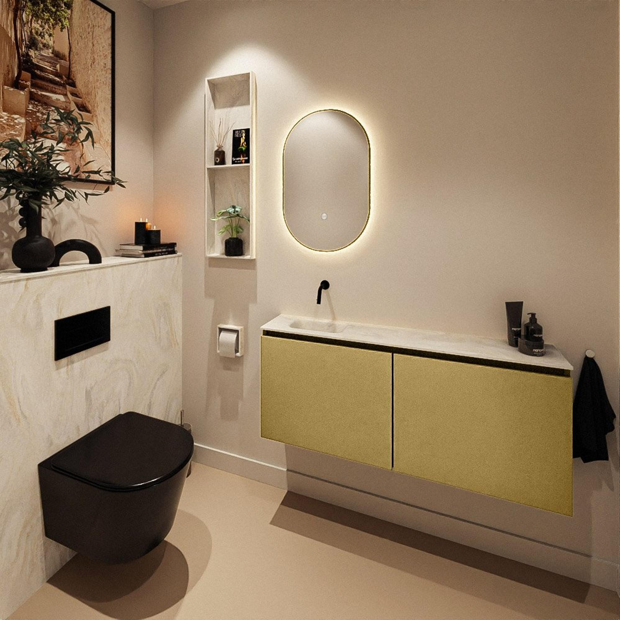 MONDIAZ TURE-DLUX 120cm toiletmeubel Oro. EDEN wastafel Ostra positie links. Zonder kraangat.