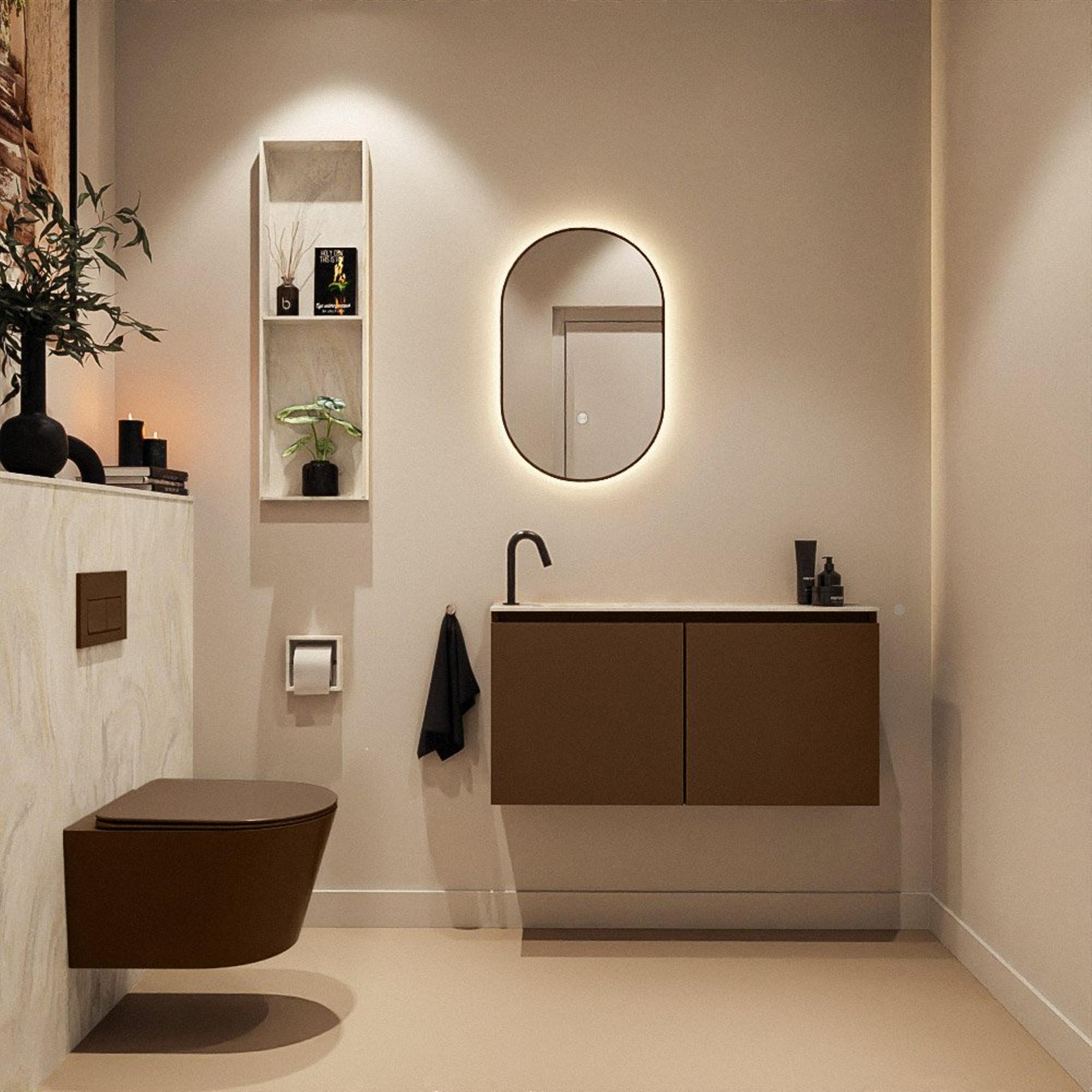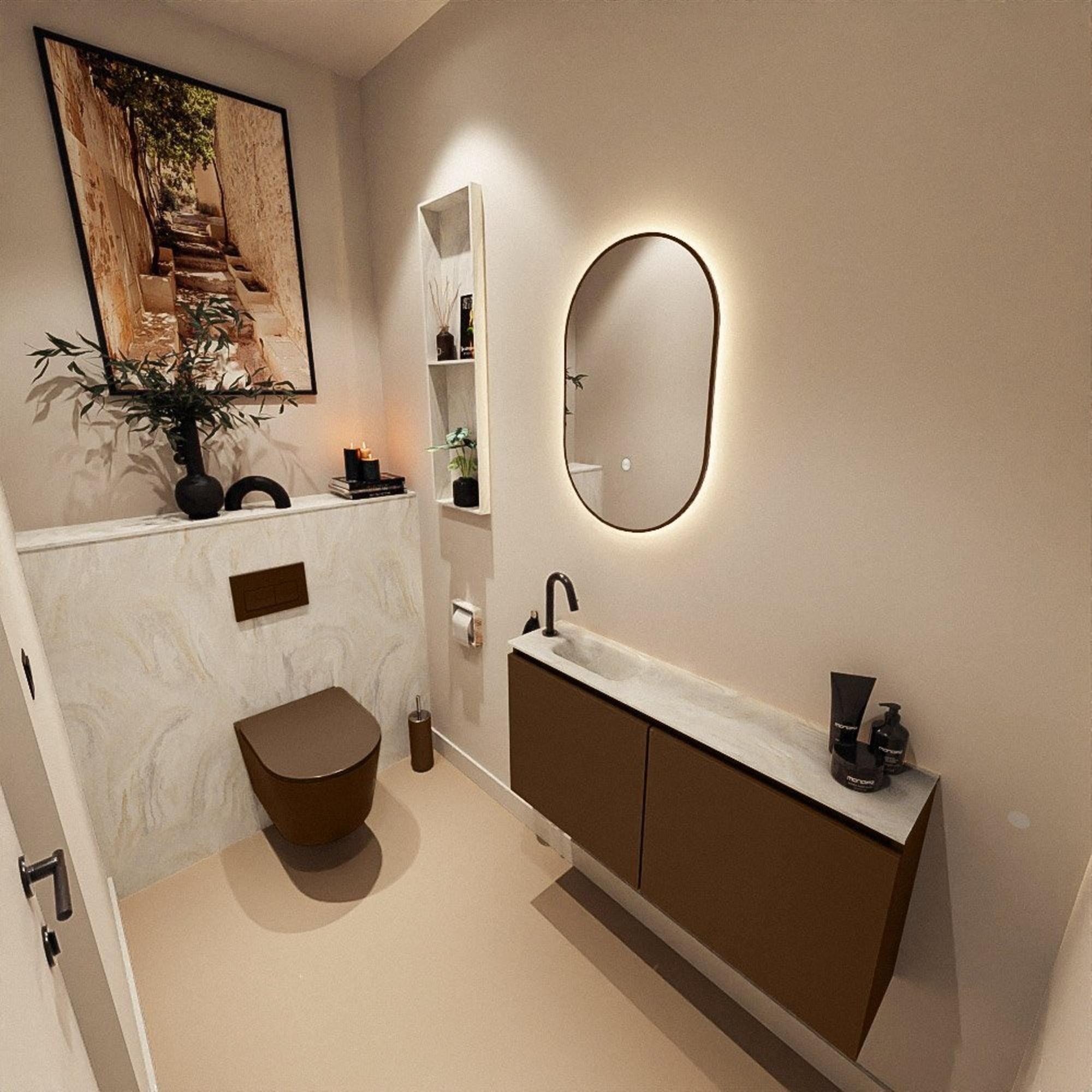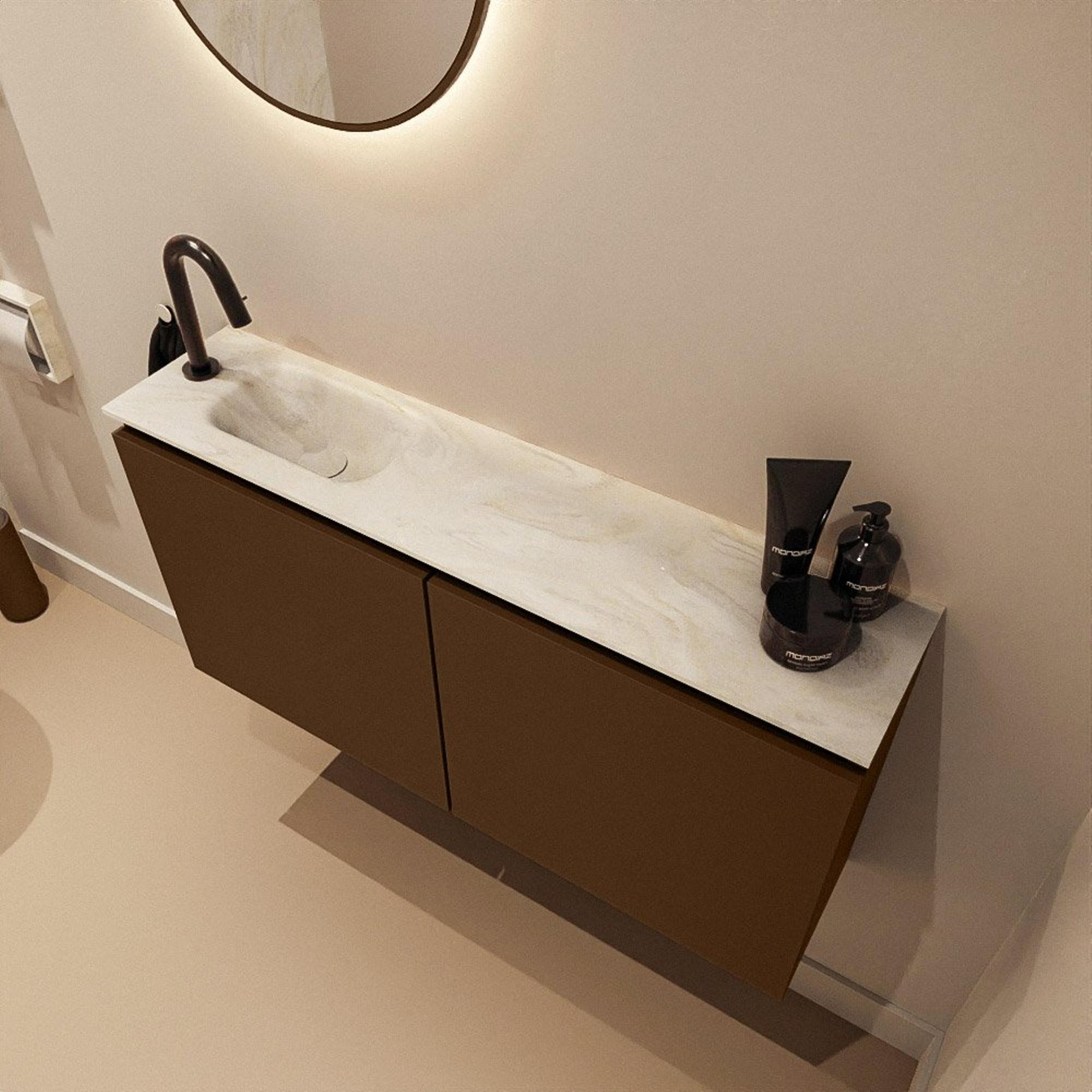 MONDIAZ TURE-DLUX 100cm toiletmeubel Rust. EDEN wastafel Ostra positie links. Met 1 kraangat.