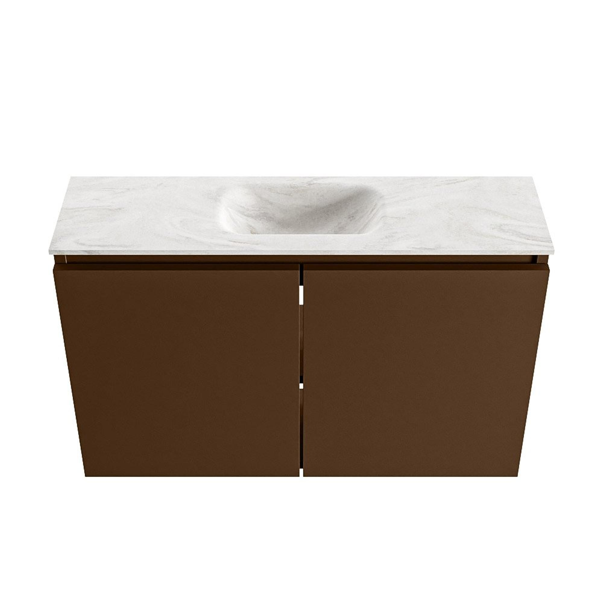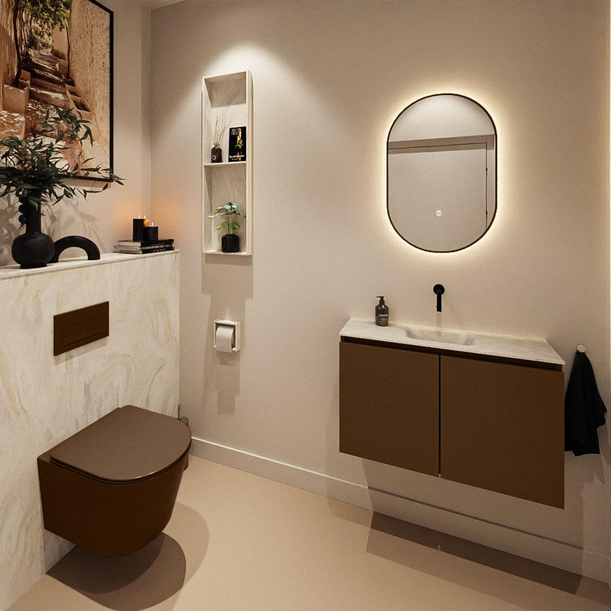 MONDIAZ TURE-DLUX 80cm toiletmeubel Rust. EDEN wastafel Ostra positie midden. Zonder kraangat.