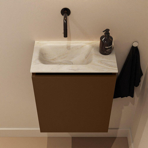 MONDIAZ TURE-DLUX 40cm toiletmeubel Rust. EDEN wastafel Ostra positie links. Zonder kraangat.