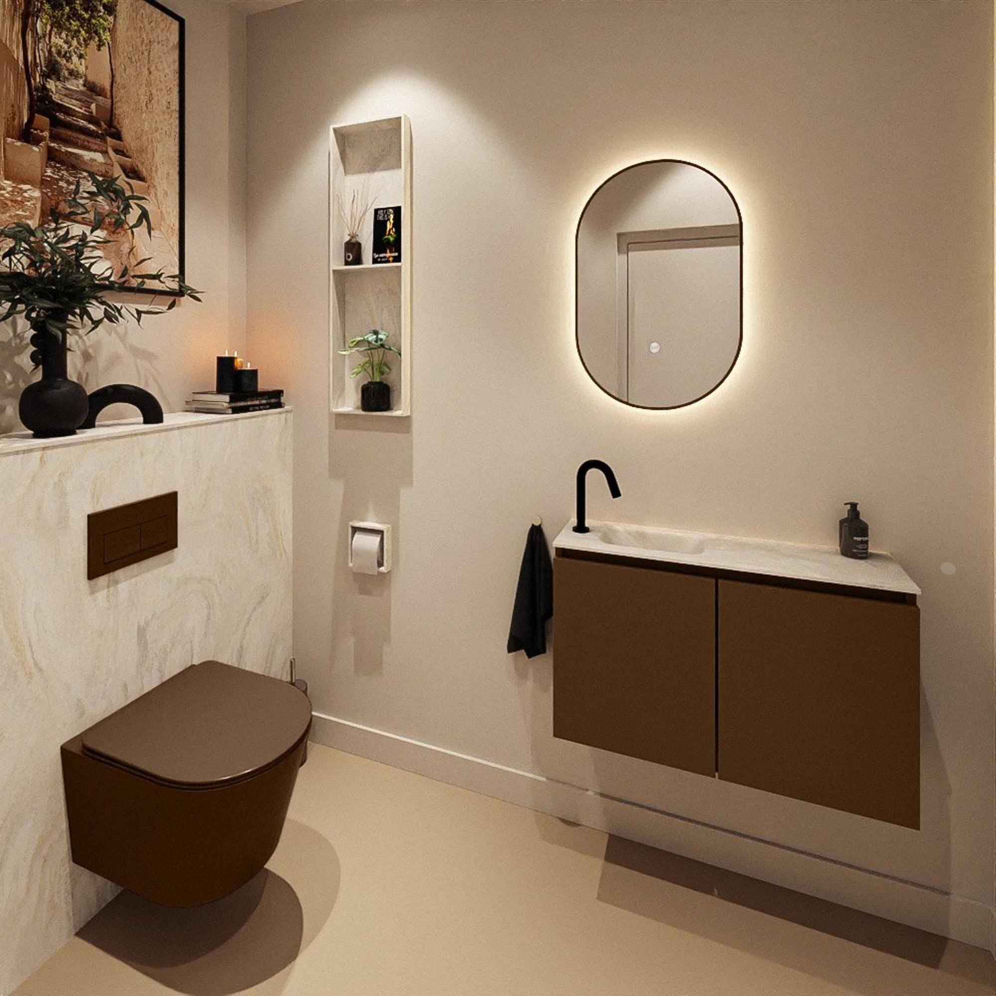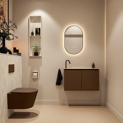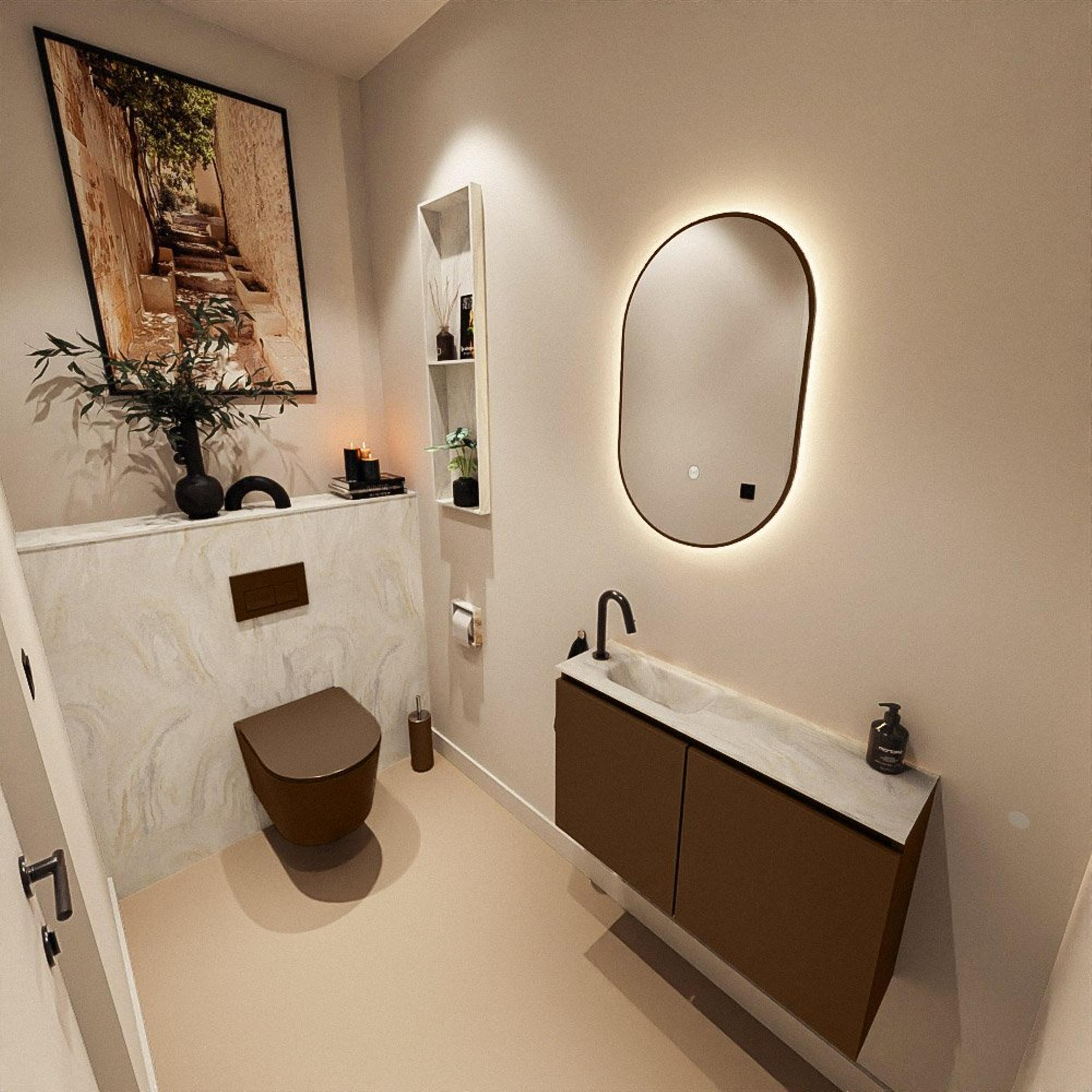 MONDIAZ TURE-DLUX 80cm toiletmeubel Rust. EDEN wastafel Ostra positie links. Met 1 kraangat.