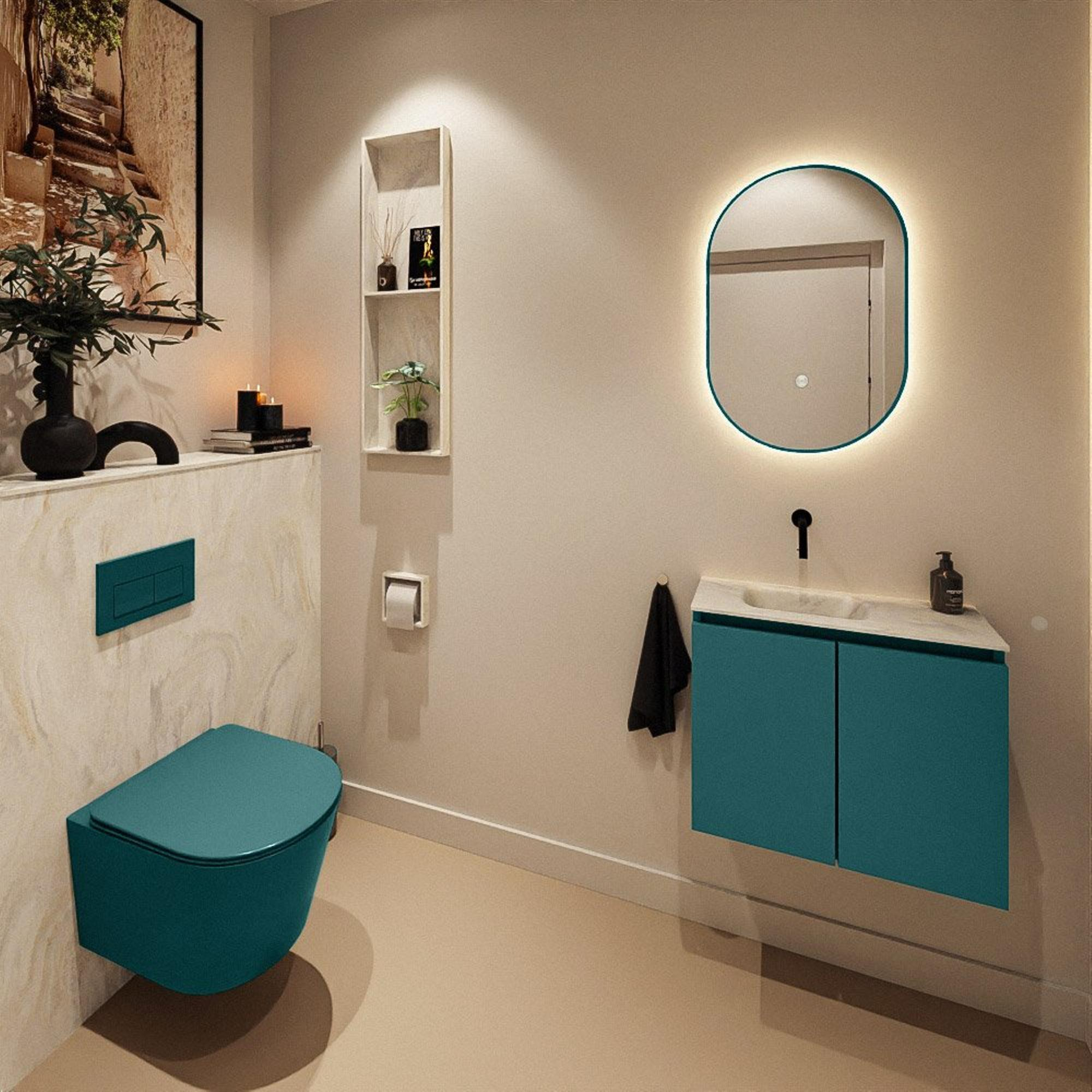 MONDIAZ TURE-DLUX 60cm toiletmeubel Smag. EDEN wastafel Ostra positie links. Zonder kraangat.