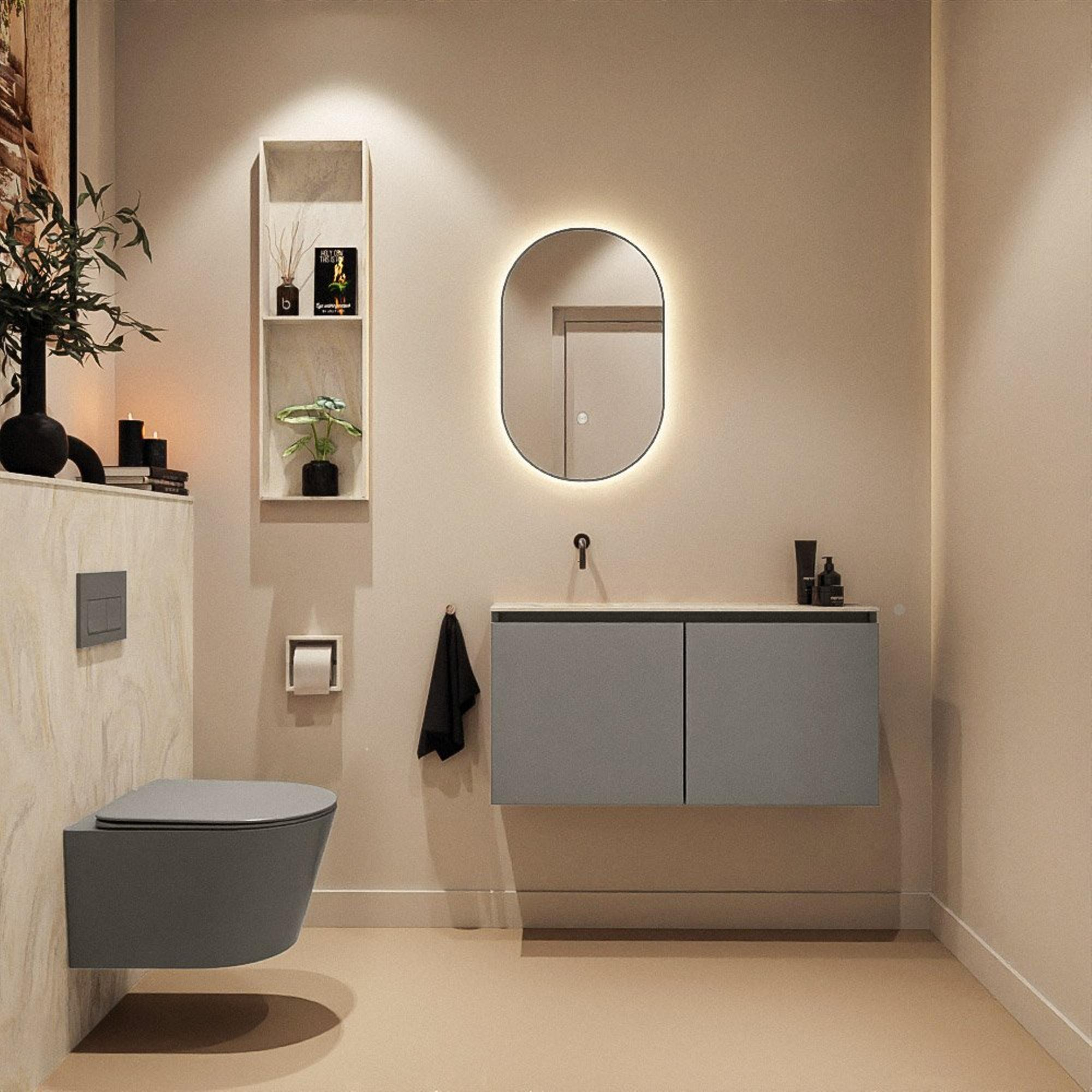 MONDIAZ TURE-DLUX 100cm toiletmeubel Smoke. EDEN wastafel Ostra positie links. Zonder kraangat.