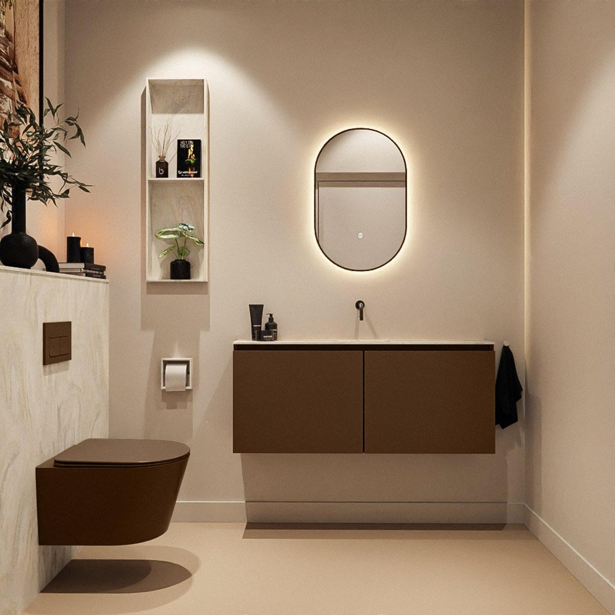 MONDIAZ TURE-DLUX 120cm toiletmeubel Rust. EDEN wastafel Ostra positie midden. Zonder kraangat.
