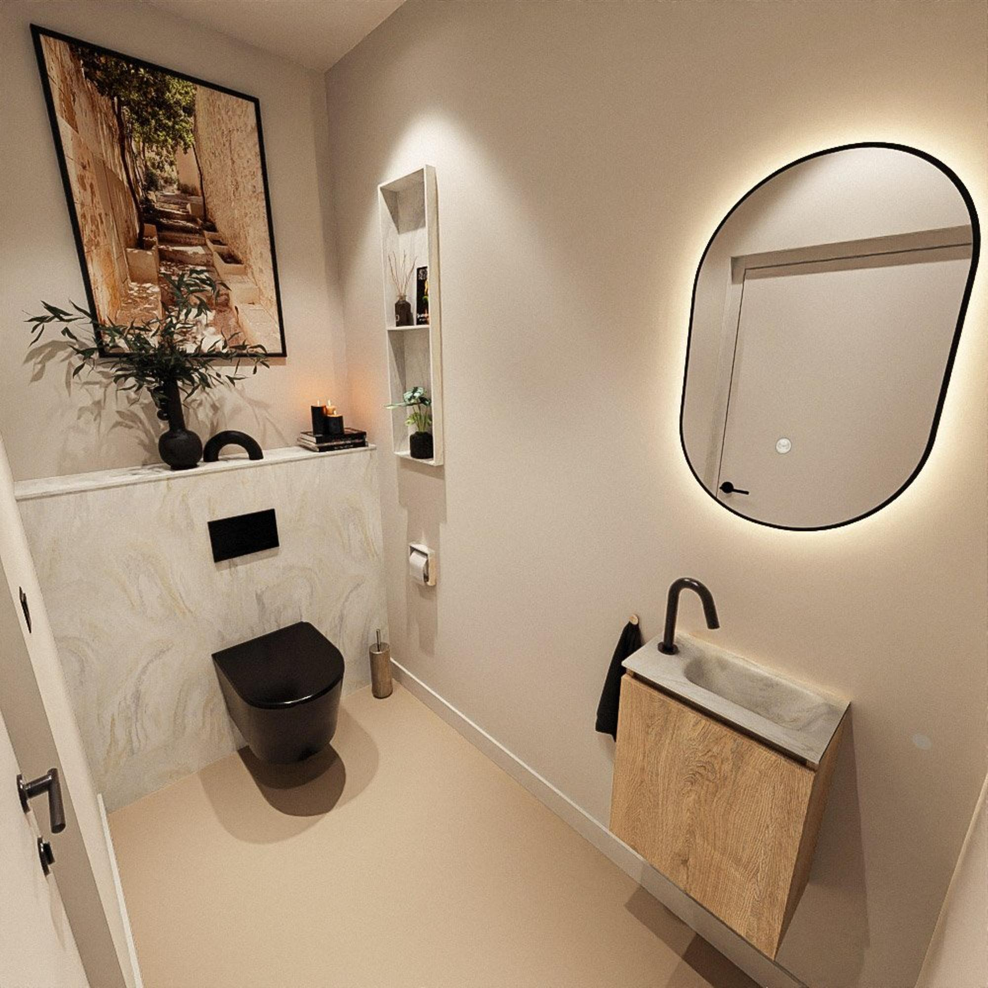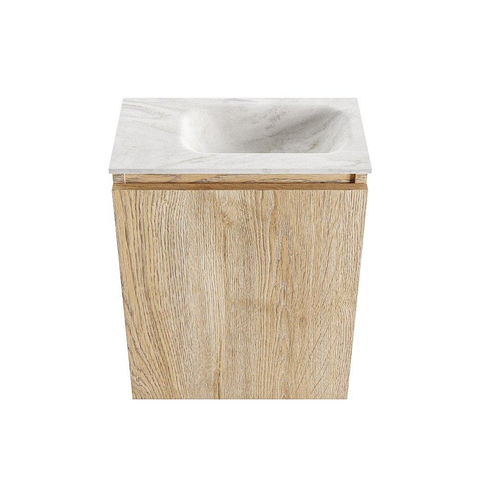 MONDIAZ TURE-DLUX 40cm toiletmeubel Washed Oak. EDEN wastafel Ostra positie rechts. Met 1 kraangat.