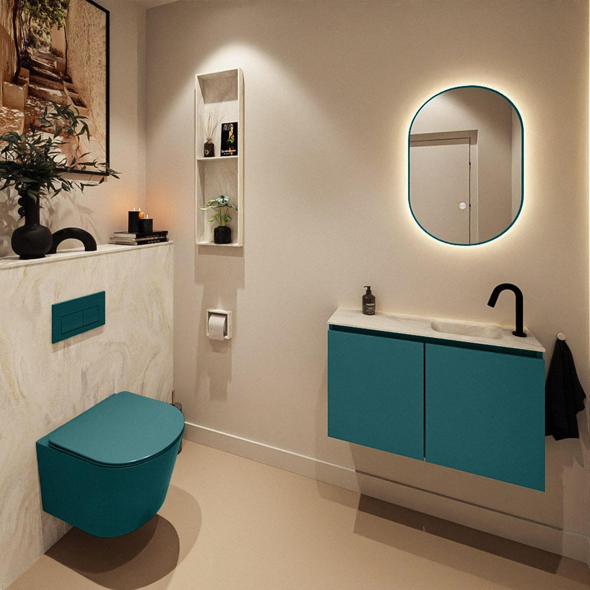 MONDIAZ TURE-DLUX 80cm toiletmeubel Smag. EDEN wastafel Ostra positie rechts. Met 1 kraangat.
