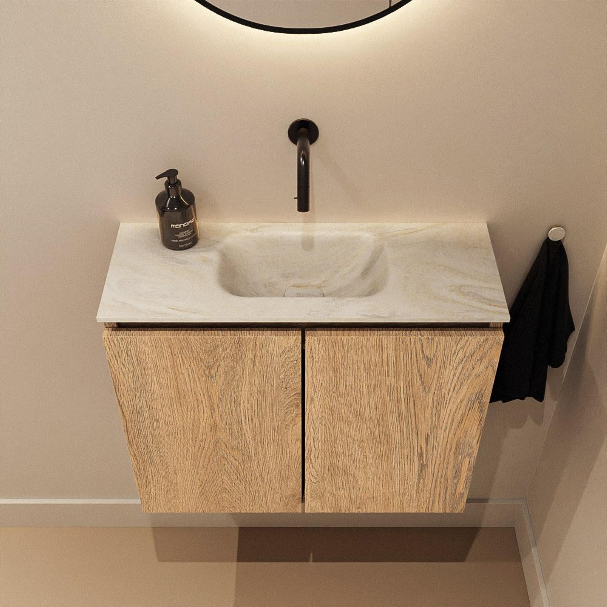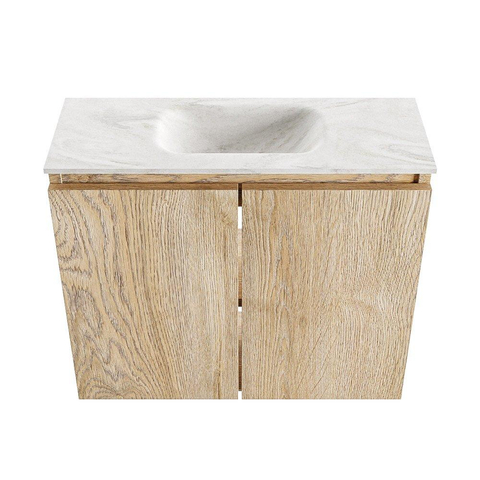 MONDIAZ TURE-DLUX 60cm toiletmeubel Washed Oak. EDEN wastafel Ostra positie midden. Zonder kraangat.