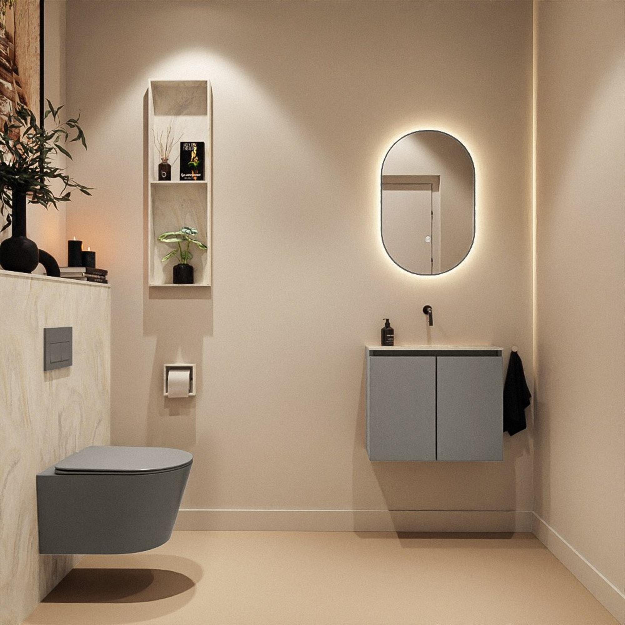 MONDIAZ TURE-DLUX 60cm toiletmeubel Smoke. EDEN wastafel Ostra positie midden. Zonder kraangat.