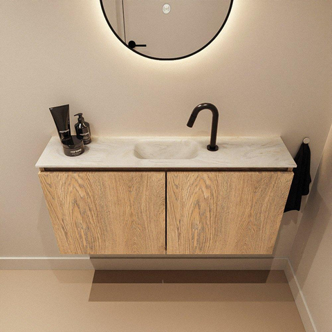 MONDIAZ TURE-DLUX 100cm toiletmeubel Washed Oak. EDEN wastafel Ostra positie midden. Met 1 kraangat.