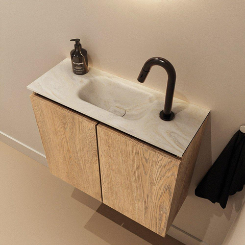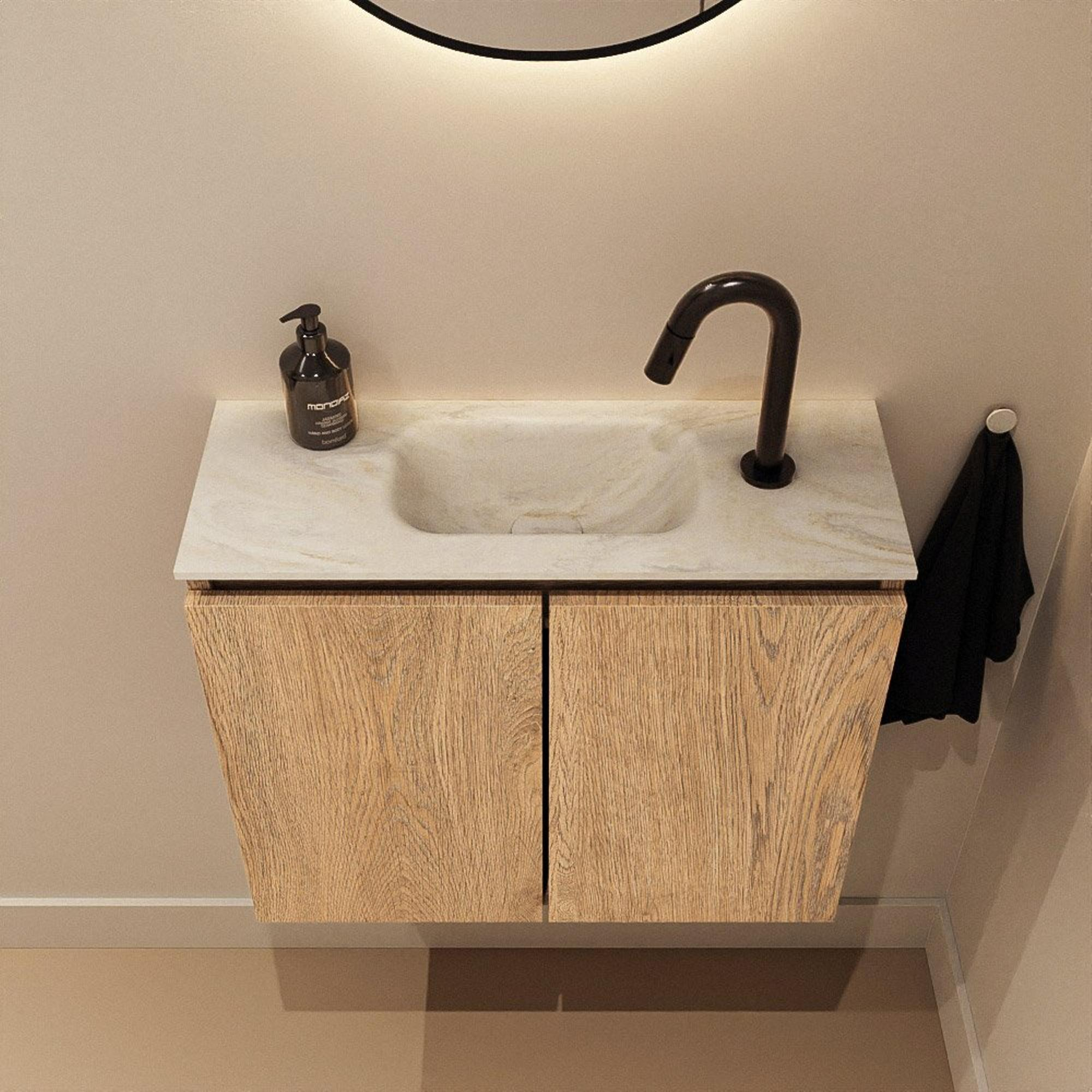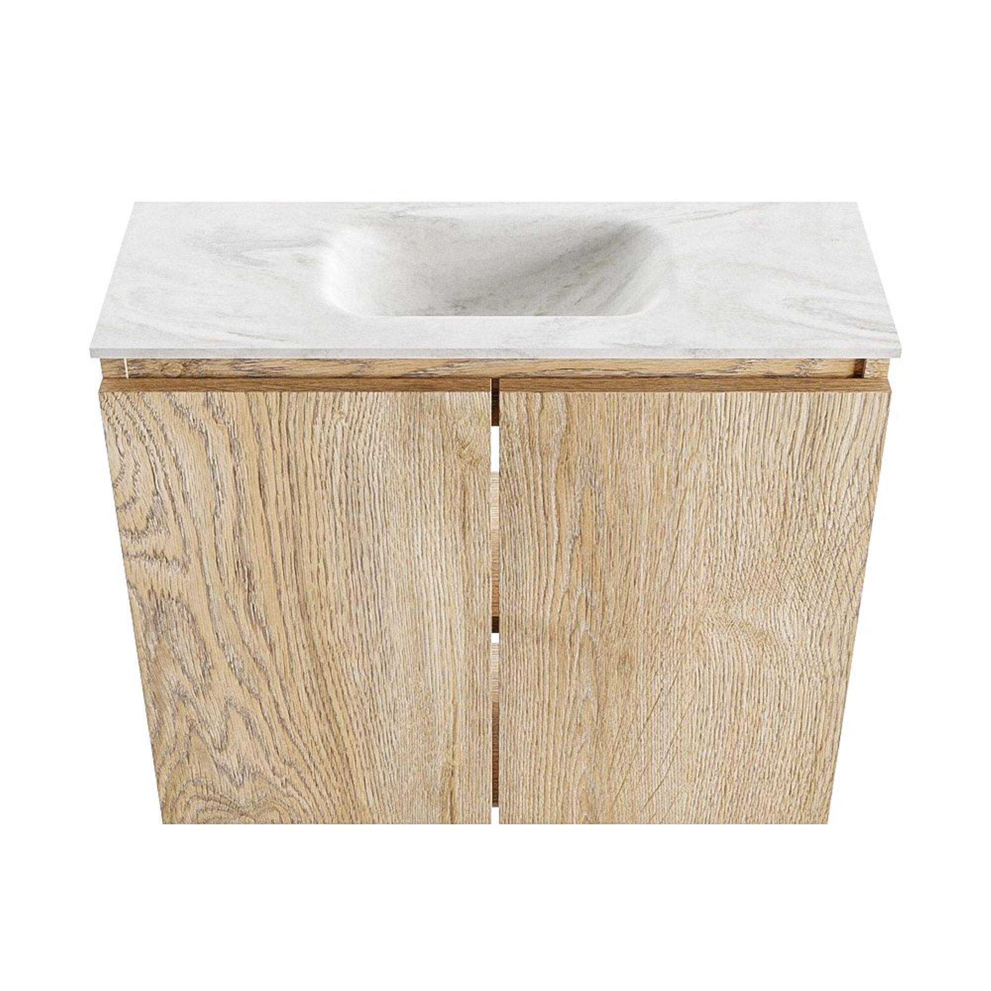 MONDIAZ TURE-DLUX 60cm toiletmeubel Washed Oak. EDEN wastafel Ostra positie midden. Met 1 kraangat.
