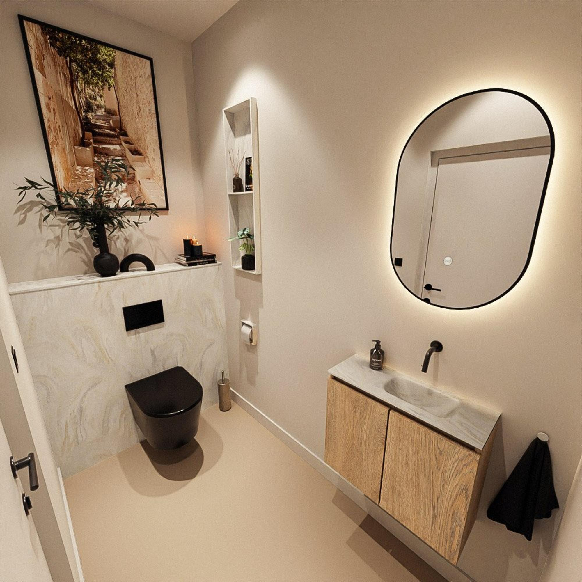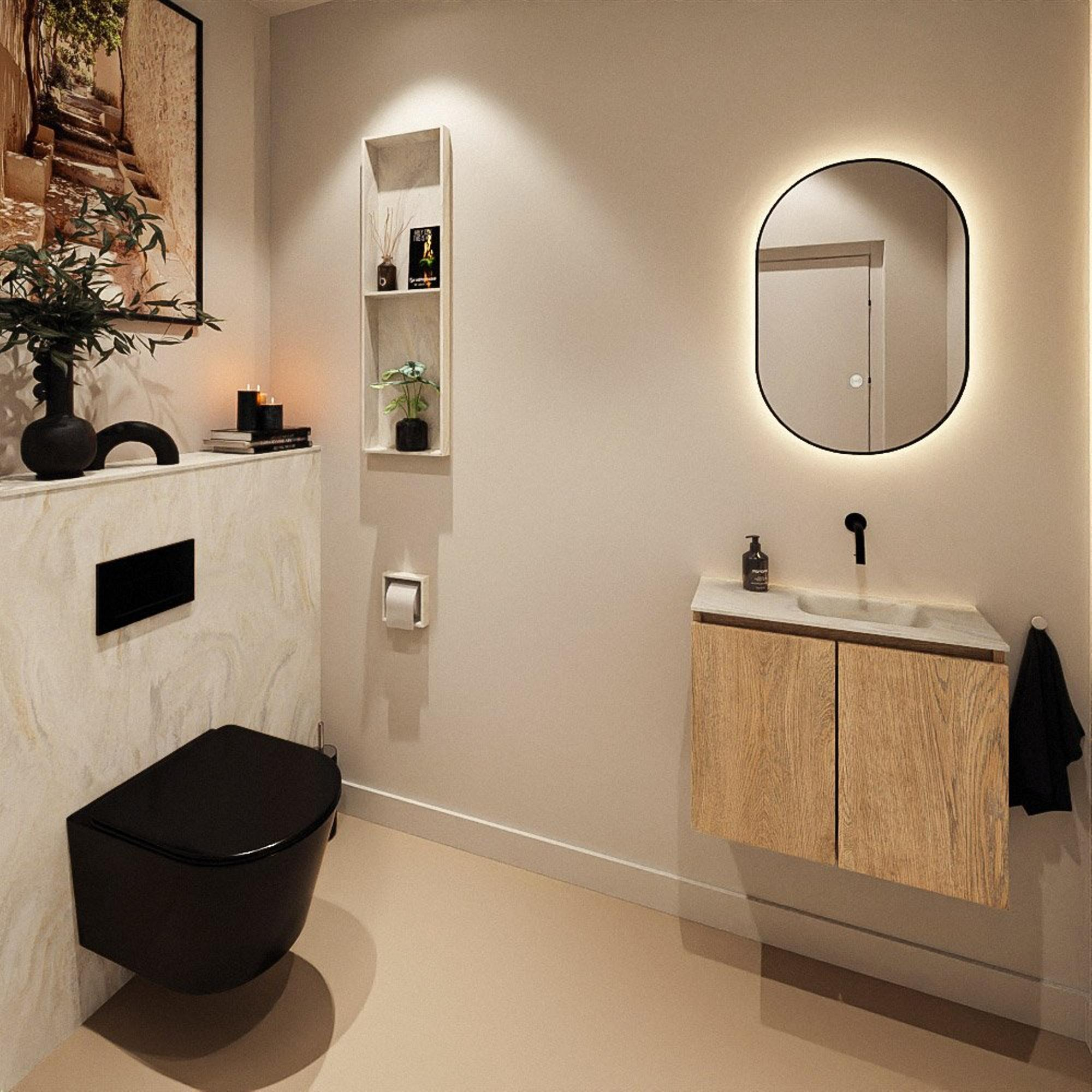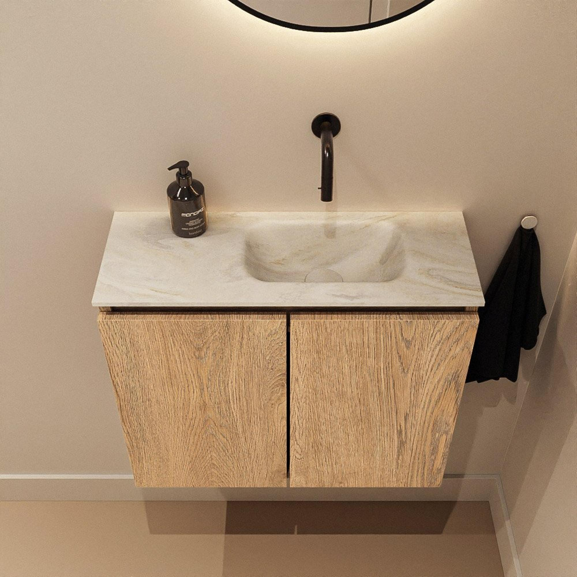 MONDIAZ TURE-DLUX 60cm toiletmeubel Washed Oak. EDEN wastafel Ostra positie rechts. Zonder kraangat.