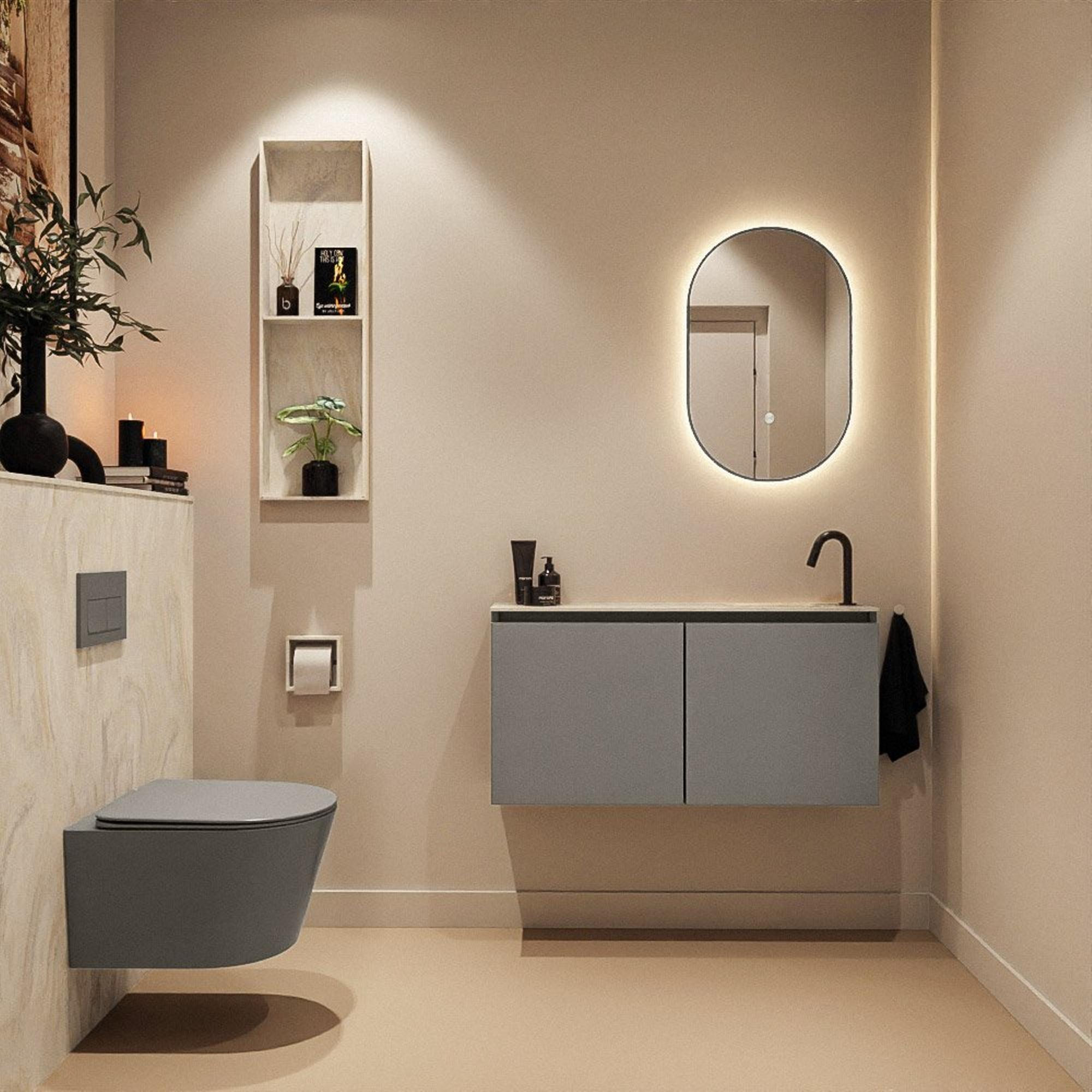 MONDIAZ TURE-DLUX 100cm toiletmeubel Smoke. EDEN wastafel Ostra positie rechts. Met 1 kraangat.