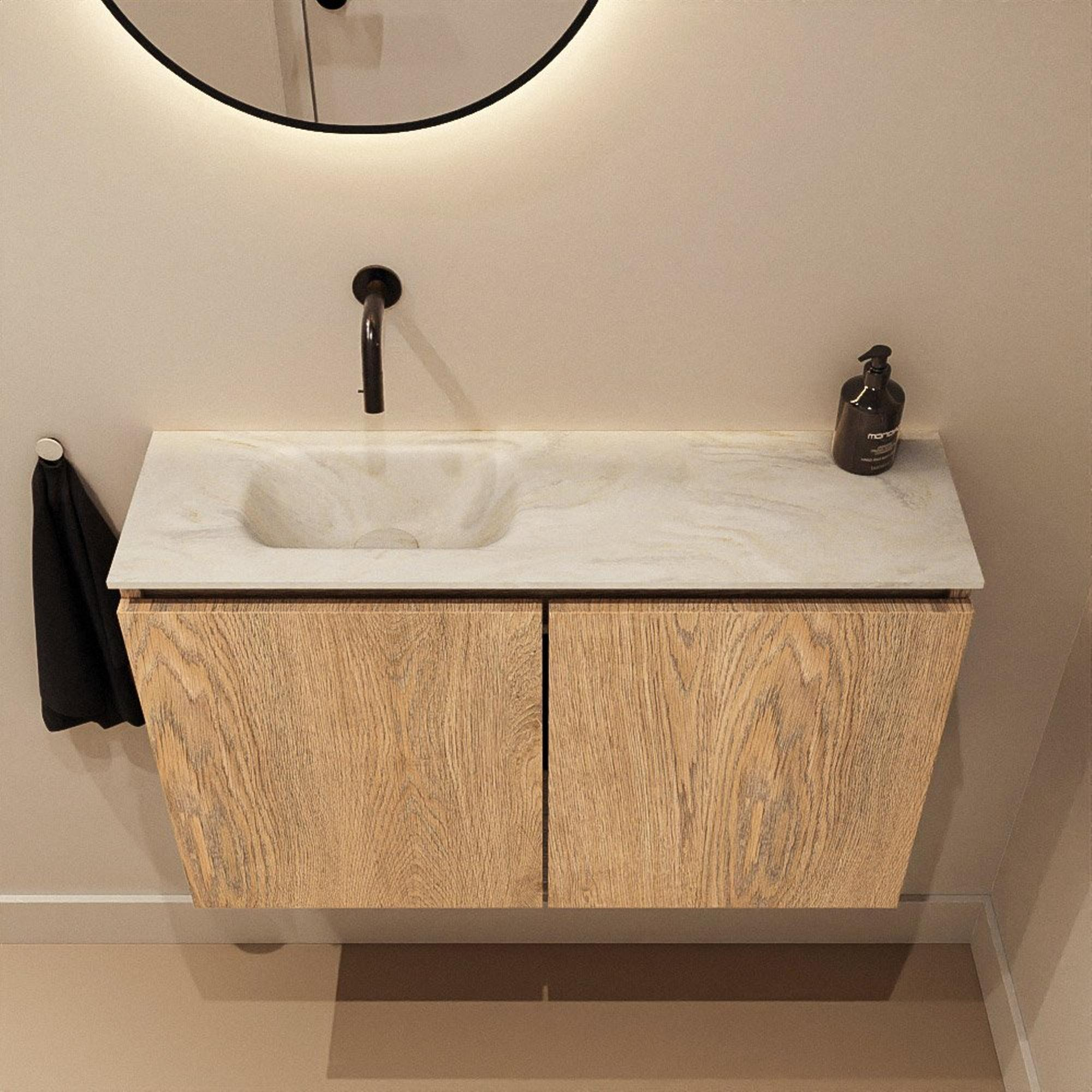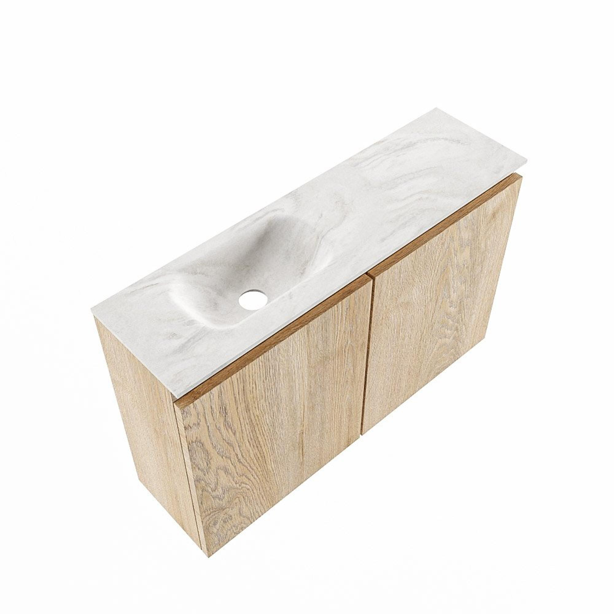 MONDIAZ TURE-DLUX 80cm toiletmeubel Washed Oak. EDEN wastafel Ostra positie links. Zonder kraangat.