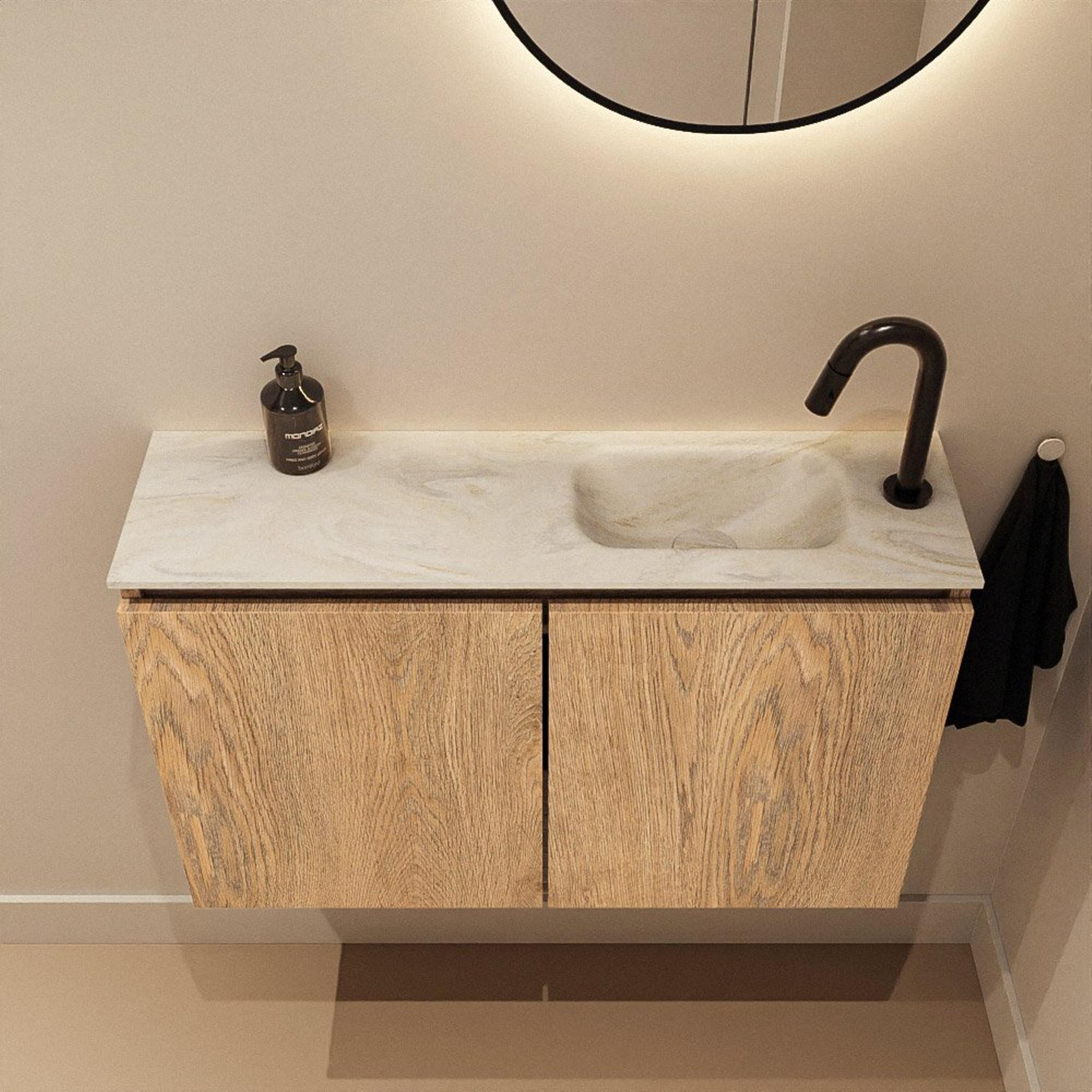 MONDIAZ TURE-DLUX 80cm toiletmeubel Washed Oak. EDEN wastafel Ostra positie rechts. Met 1 kraangat.