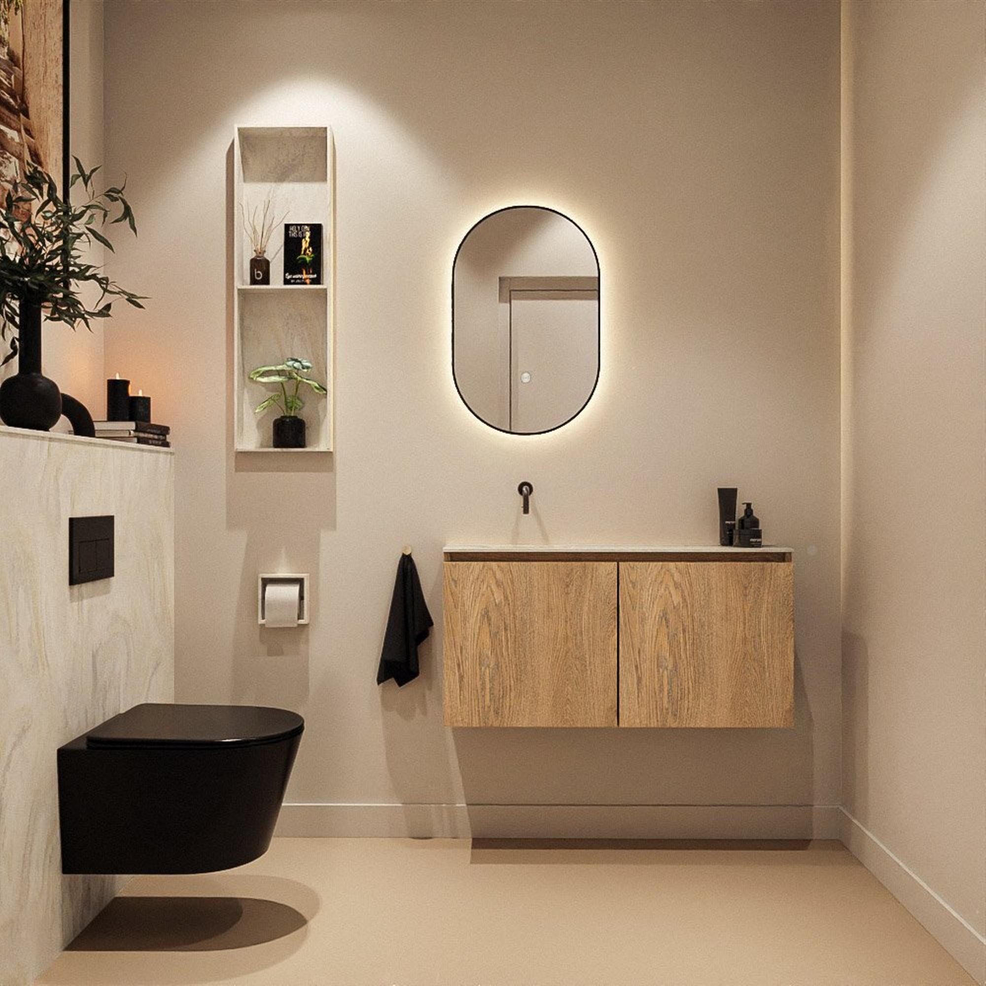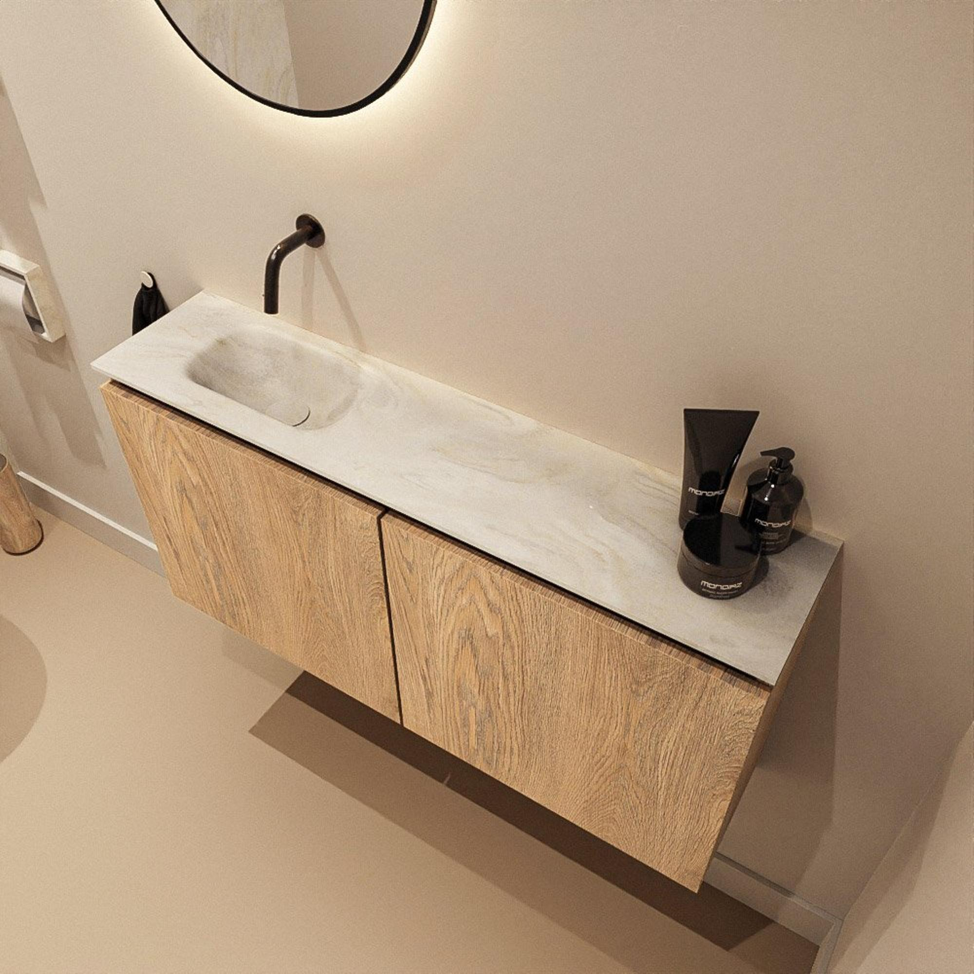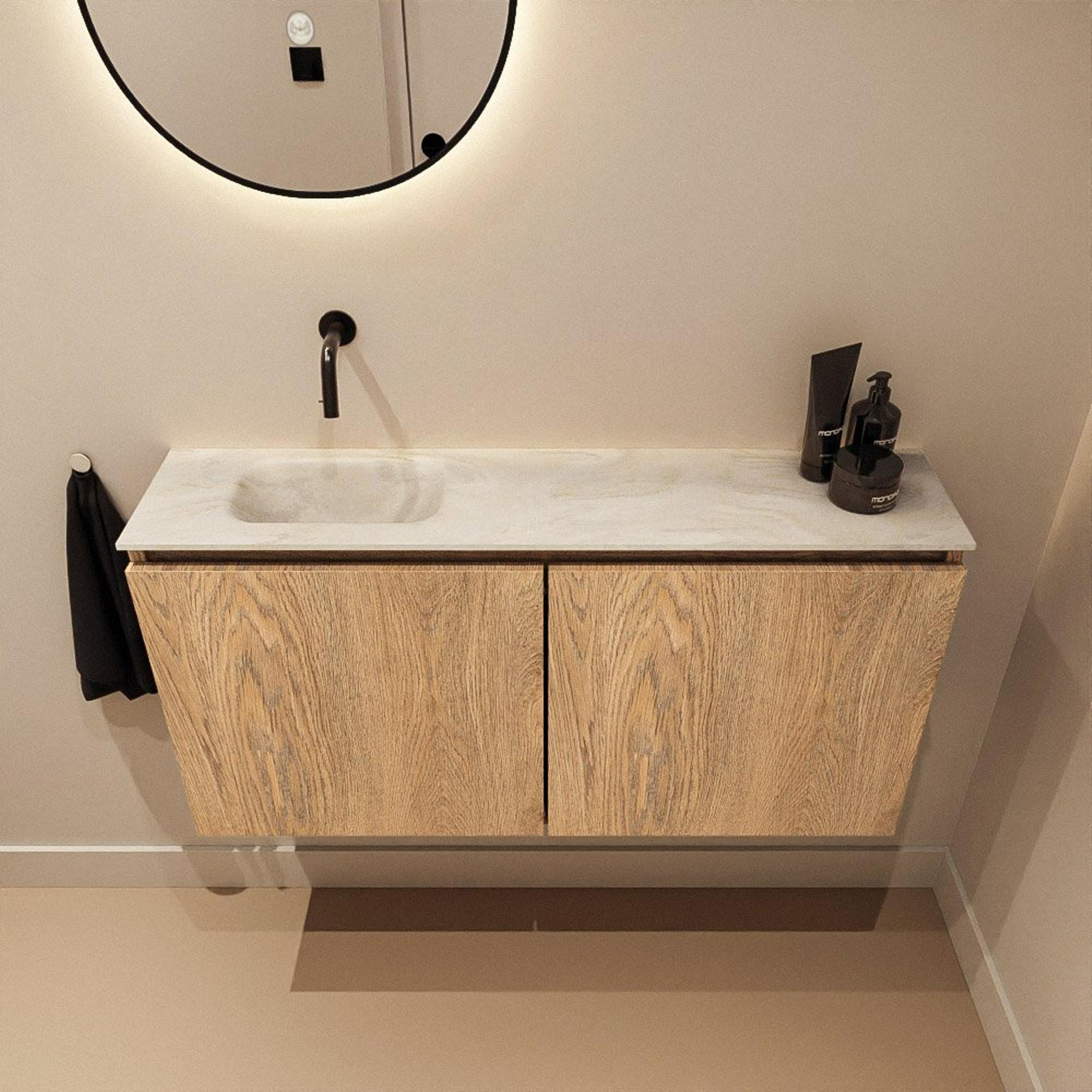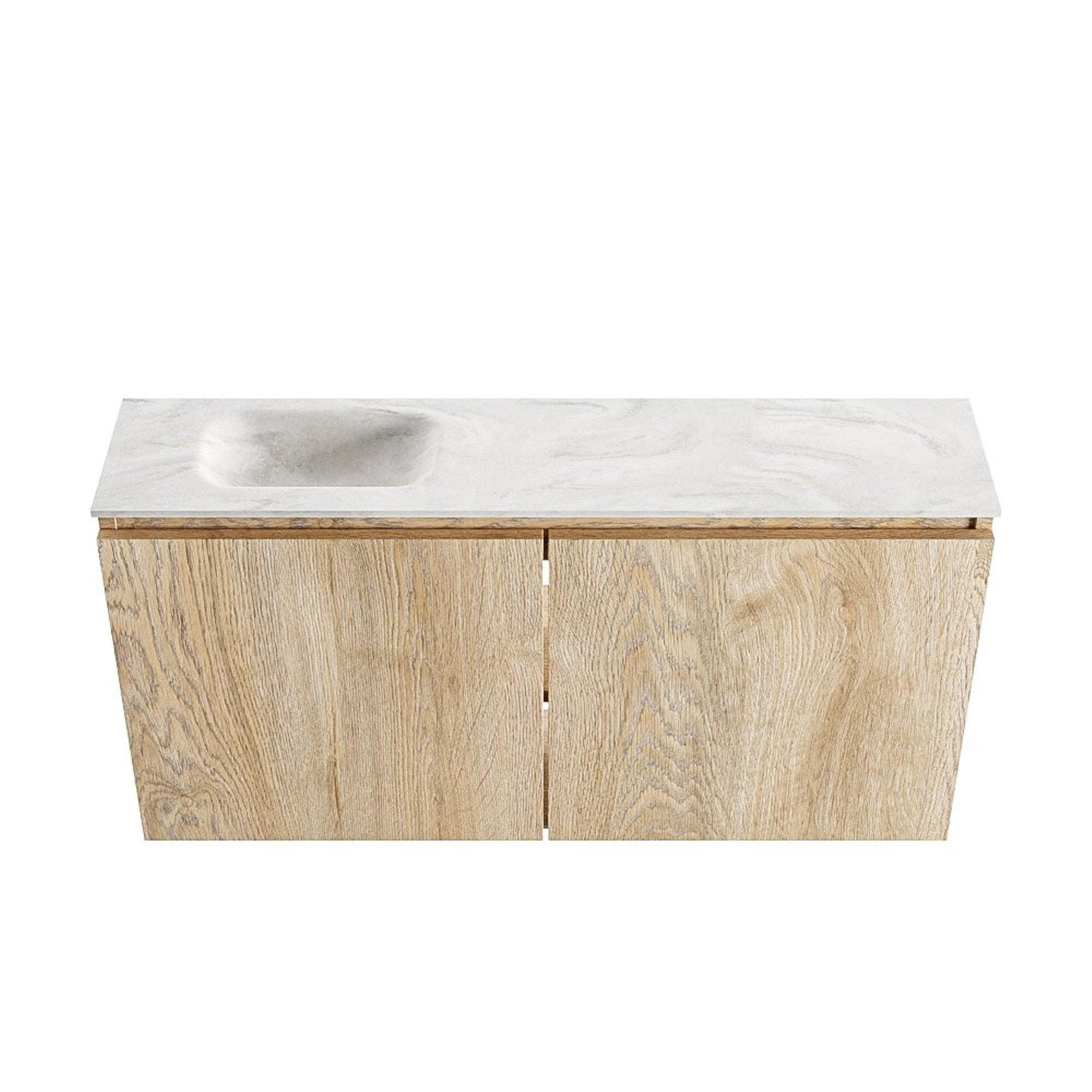MONDIAZ TURE-DLUX 100cm toiletmeubel Washed Oak. EDEN wastafel Ostra positie links. Zonder kraangat.