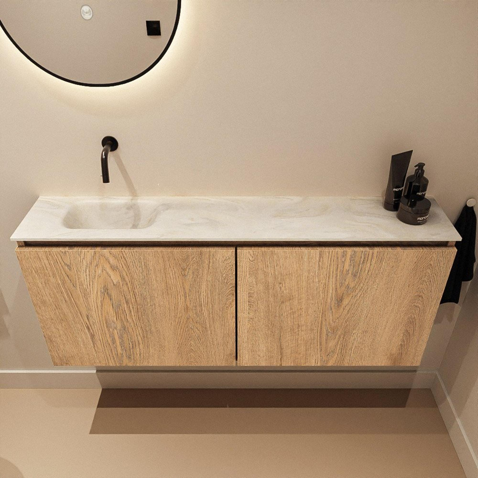 MONDIAZ TURE-DLUX 120cm toiletmeubel Washed Oak. EDEN wastafel Ostra positie links. Zonder kraangat.