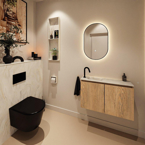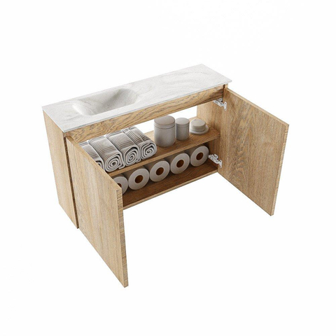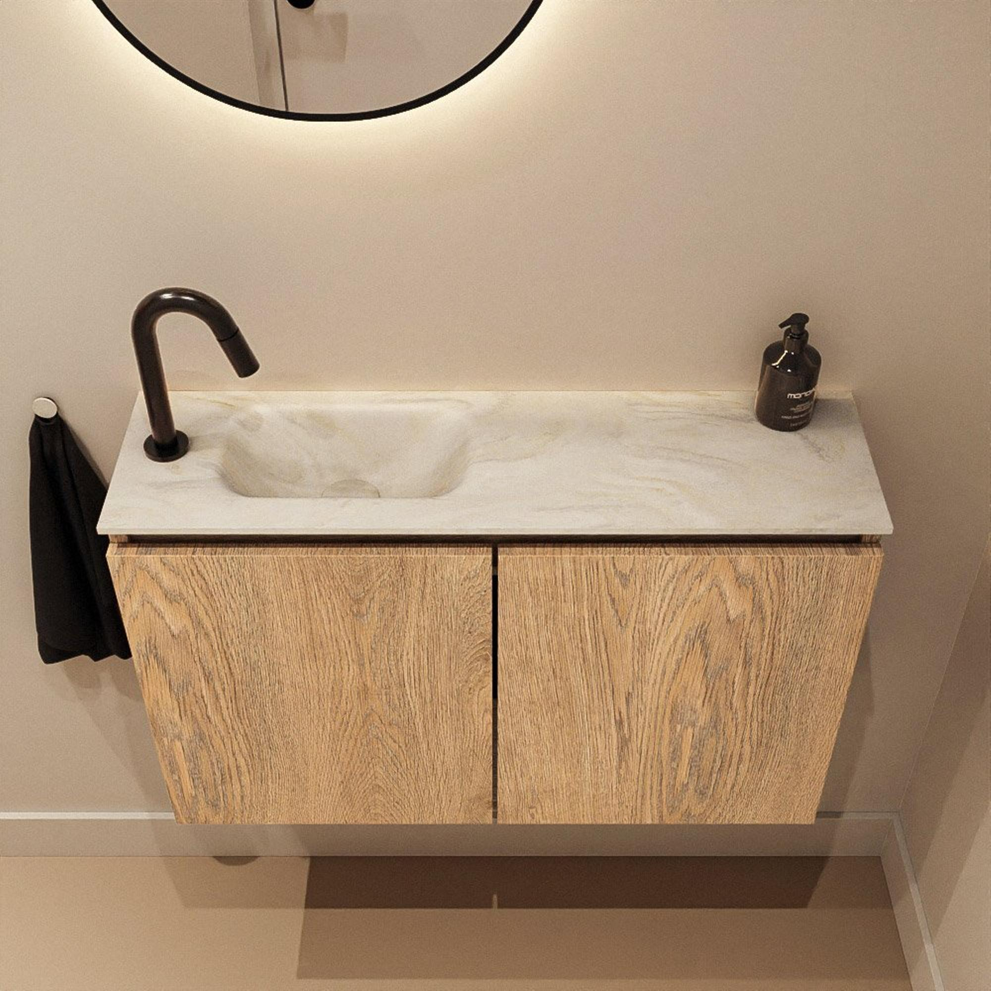 MONDIAZ TURE-DLUX 80cm toiletmeubel Washed Oak. EDEN wastafel Ostra positie links. Met 1 kraangat.