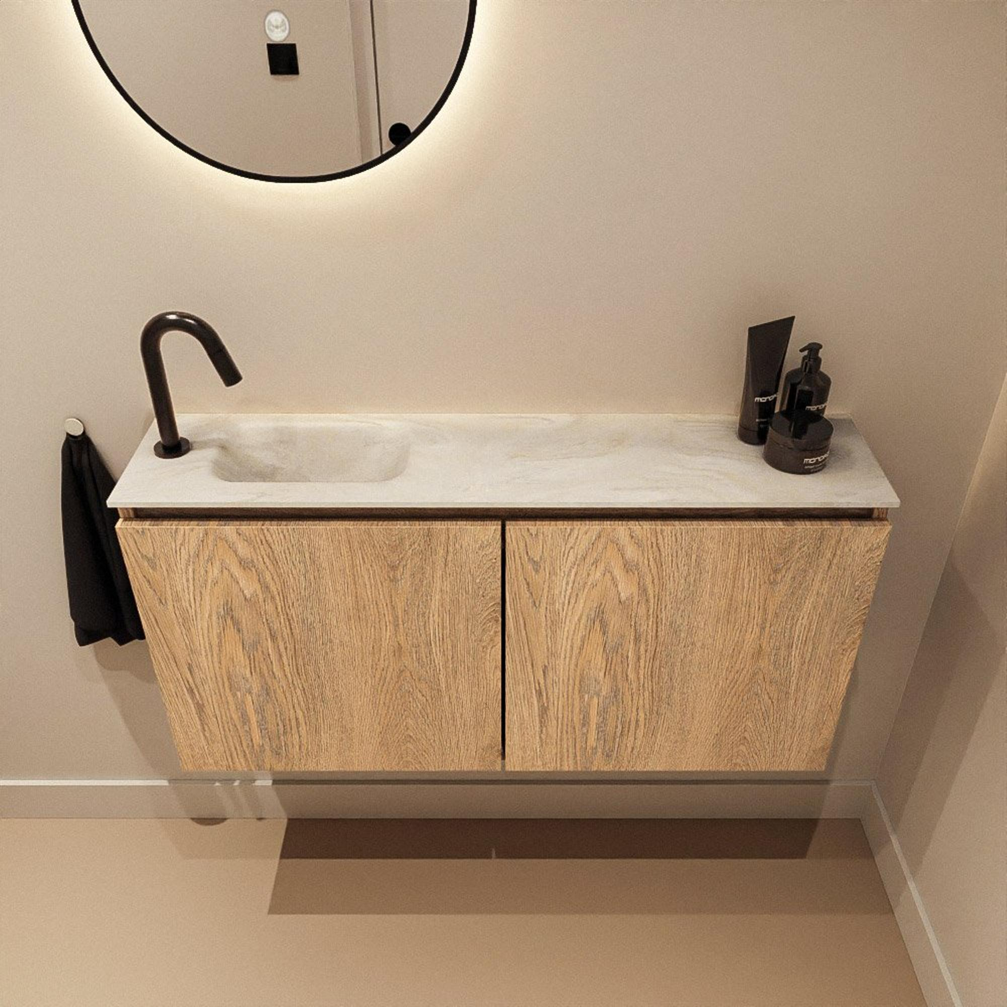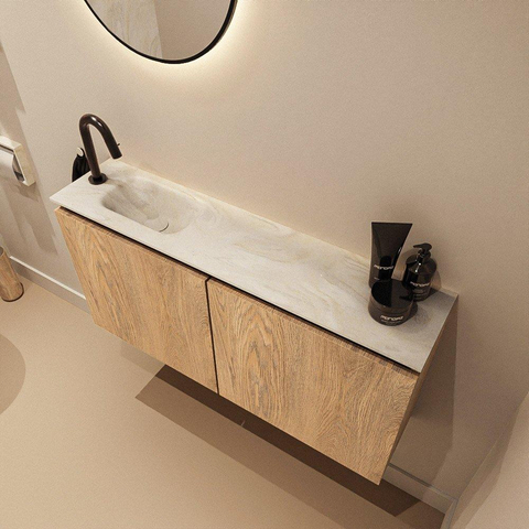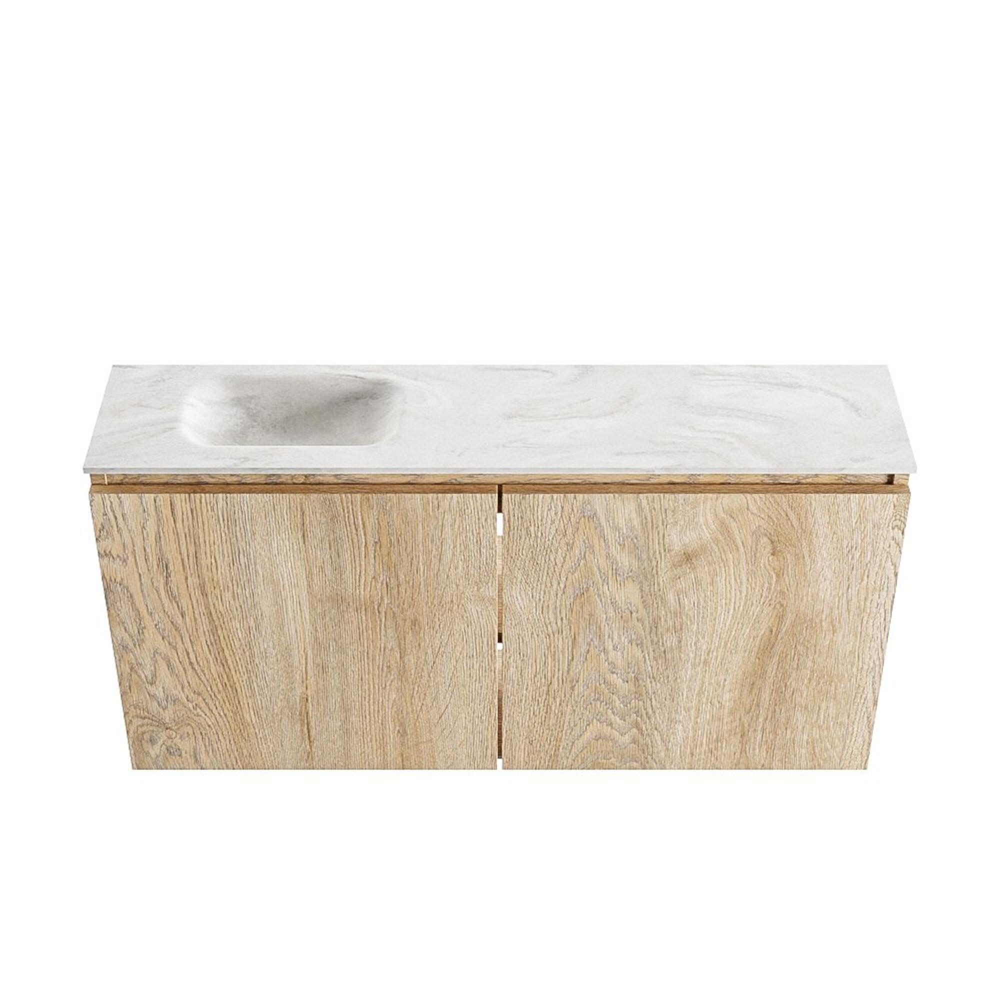MONDIAZ TURE-DLUX 100cm toiletmeubel Washed Oak. EDEN wastafel Ostra positie links. Met 1 kraangat.
