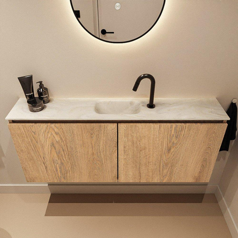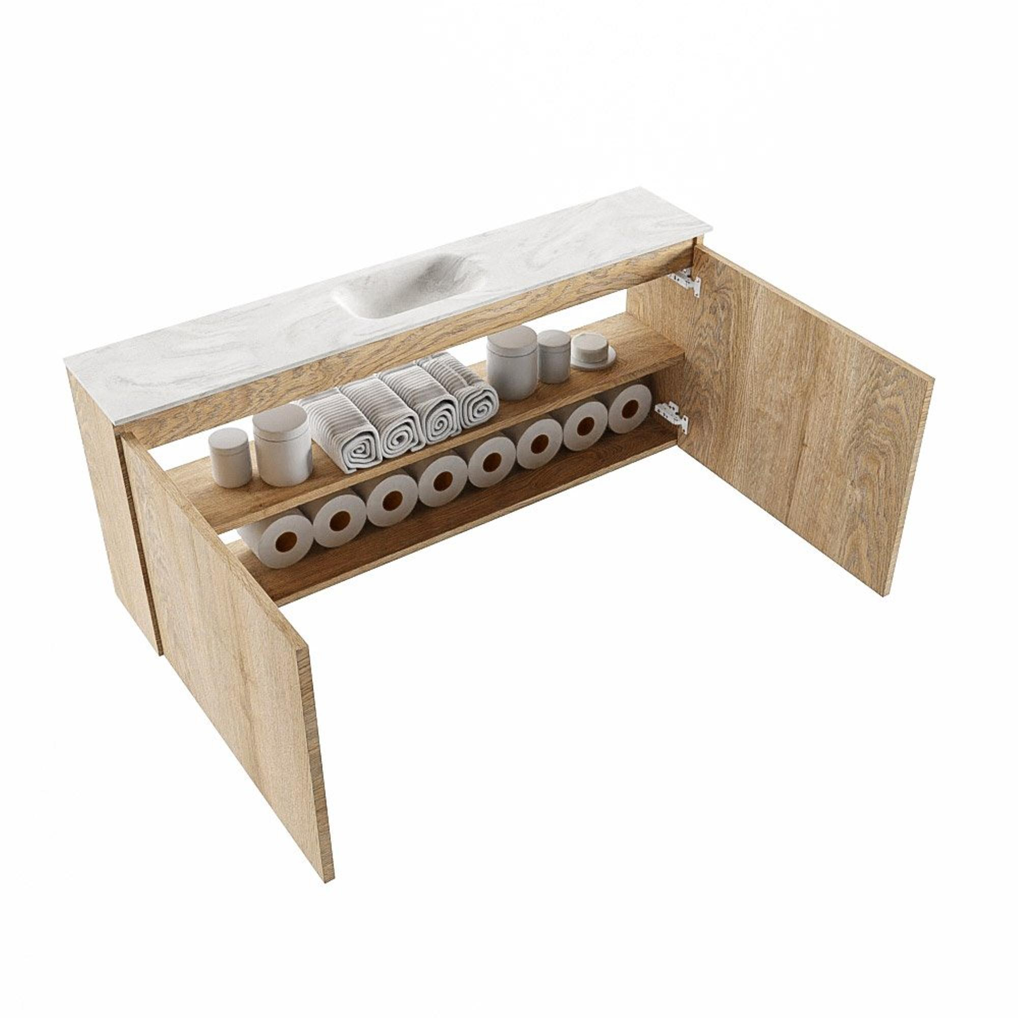 MONDIAZ TURE-DLUX 120cm toiletmeubel Washed Oak. EDEN wastafel Ostra positie midden. Met 1 kraangat.