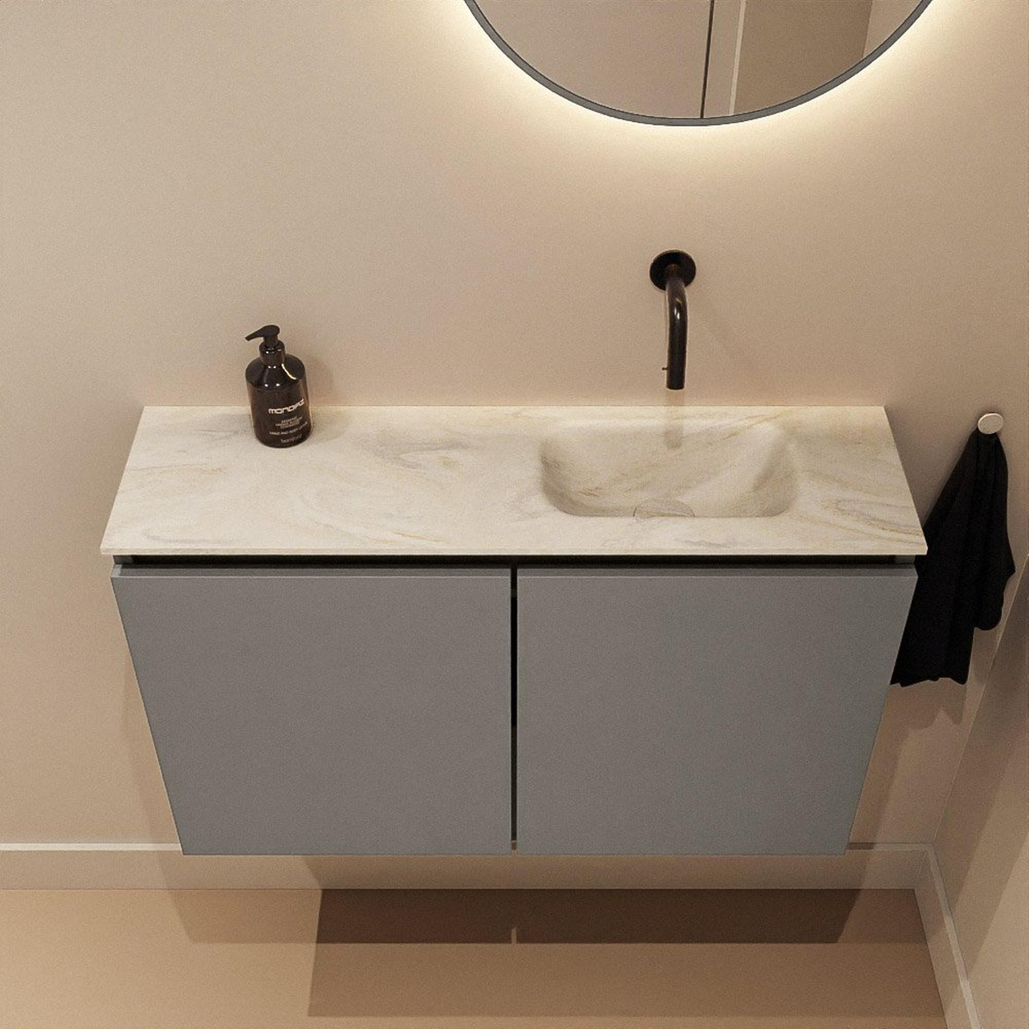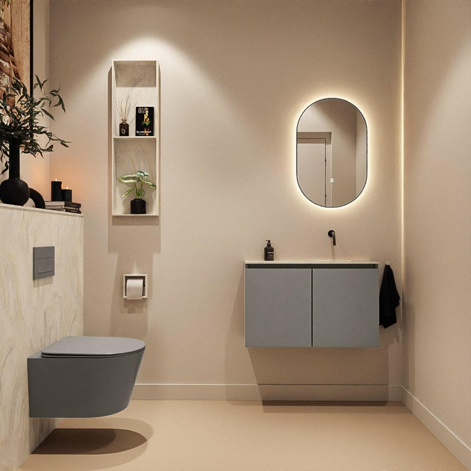 MONDIAZ TURE-DLUX 80cm toiletmeubel Smoke. EDEN wastafel Ostra positie rechts. Zonder kraangat.