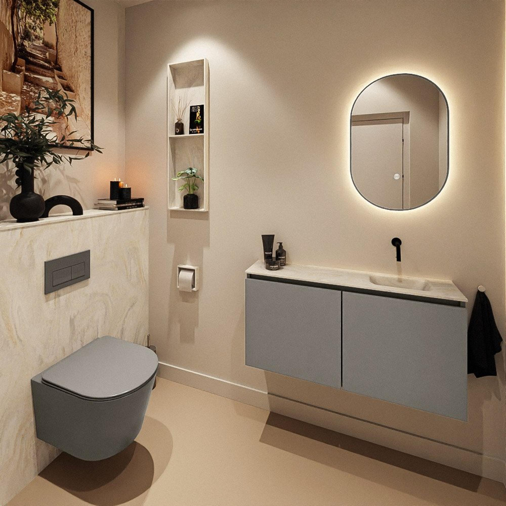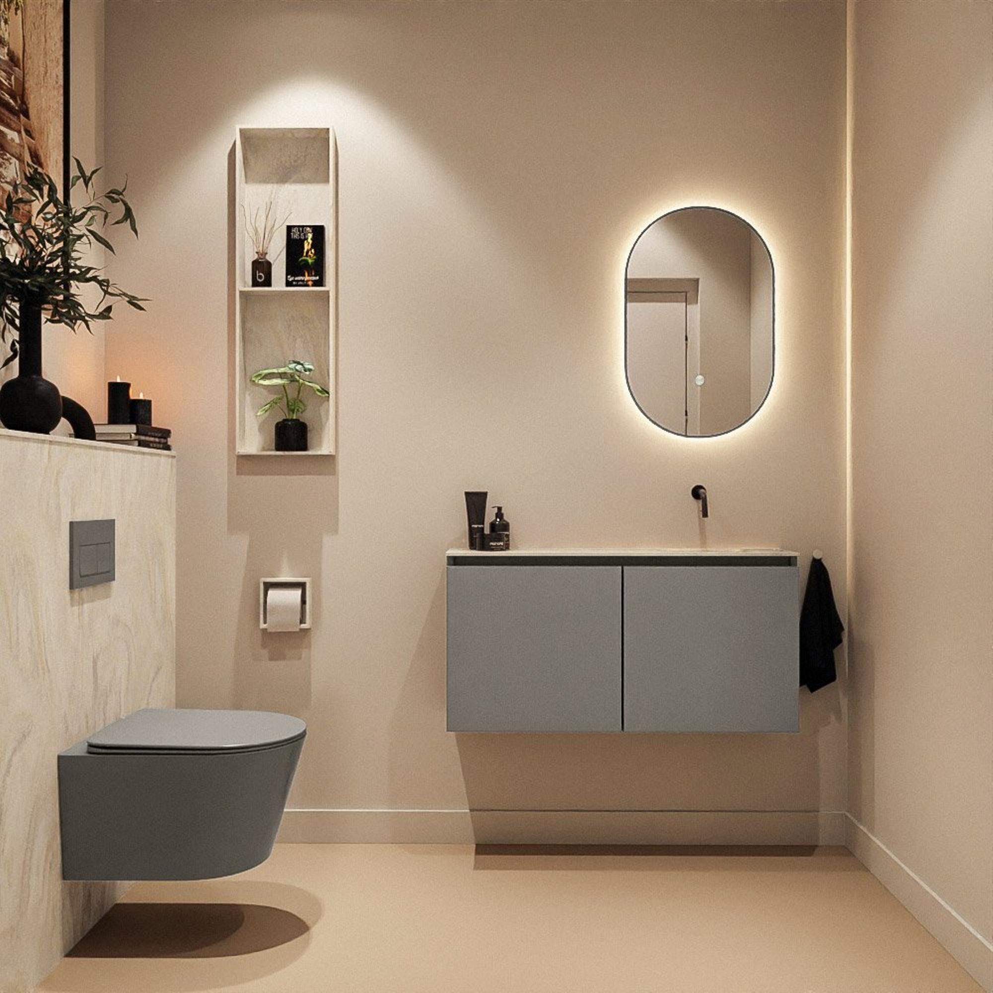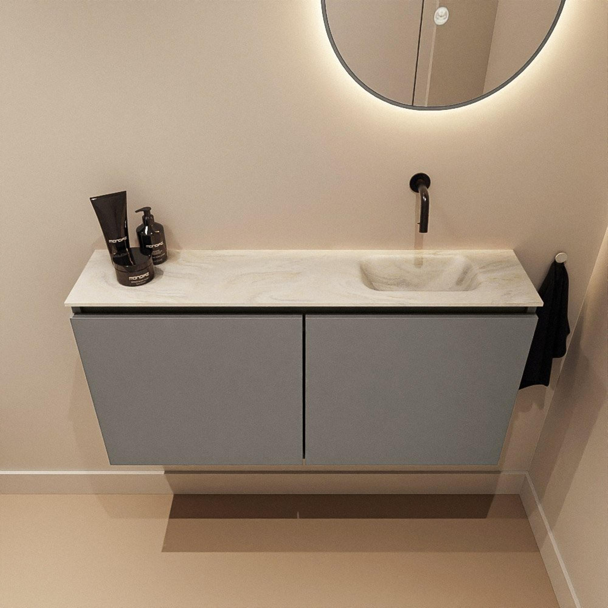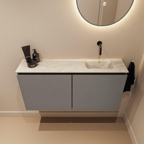 MONDIAZ TURE-DLUX 100cm toiletmeubel Smoke. EDEN wastafel Ostra positie rechts. Zonder kraangat.