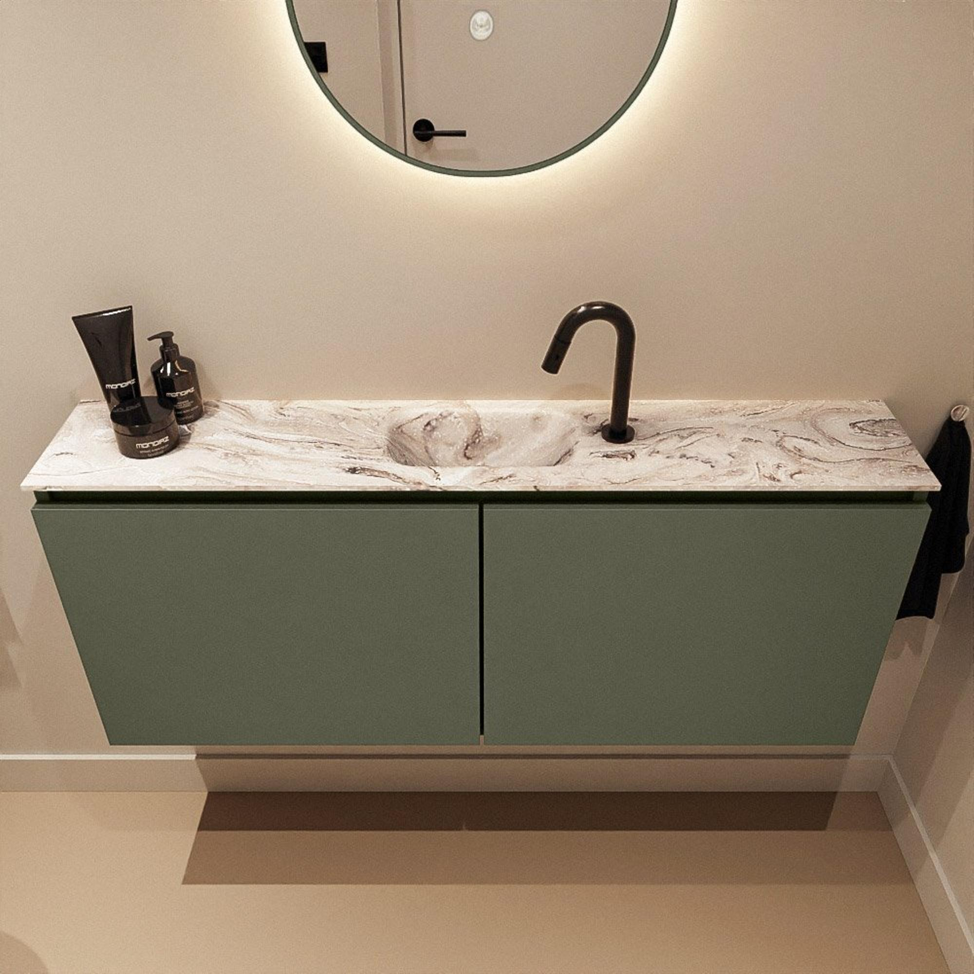 MONDIAZ TURE-DLUX 120cm toiletmeubel Army. EDEN wastafel Glace positie midden. Met 1 kraangat.
