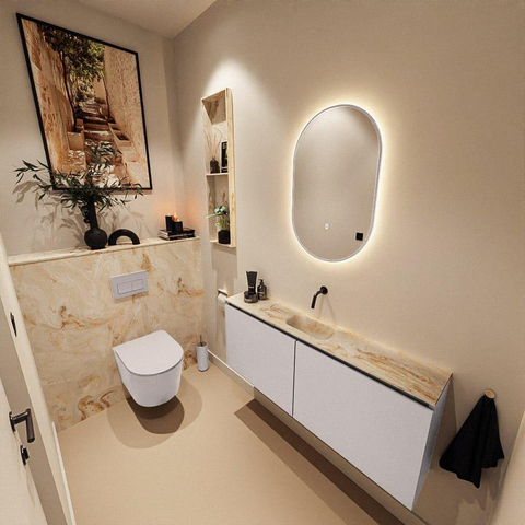 Ontdek GLOW, de ovale spiegel van 45x90 cm die niet alleen verlicht, maar ook jouw badkamerervaring naar een hoger niveau tilt. De rand van deze prachtige spiegel is verkrijgbaar in 17 verschillende kleuren, zodat je hem perfect kunt afstemmen op jouw stijl. De ingebouwde bewegingssensor zorgt ervoor dat de subtiele indirecte LED-verlichting rondom de spiegel automatisch oplicht wanneer iemand de ruimte betreedt. Dankzij deze handige sensor blijven vieze vingers op de spiegel achterwege, wat niet alleen hygiënisch, maar ook praktisch is. Bovendien gaat het licht automatisch uit, waardoor je energie bespaart en je elektriciteitsrekening vermindert. GLOW voegt niet alleen stijl toe, maar maakt jouw dagelijkse routine ook hygiënisch, gemakkelijk én milieubewust!