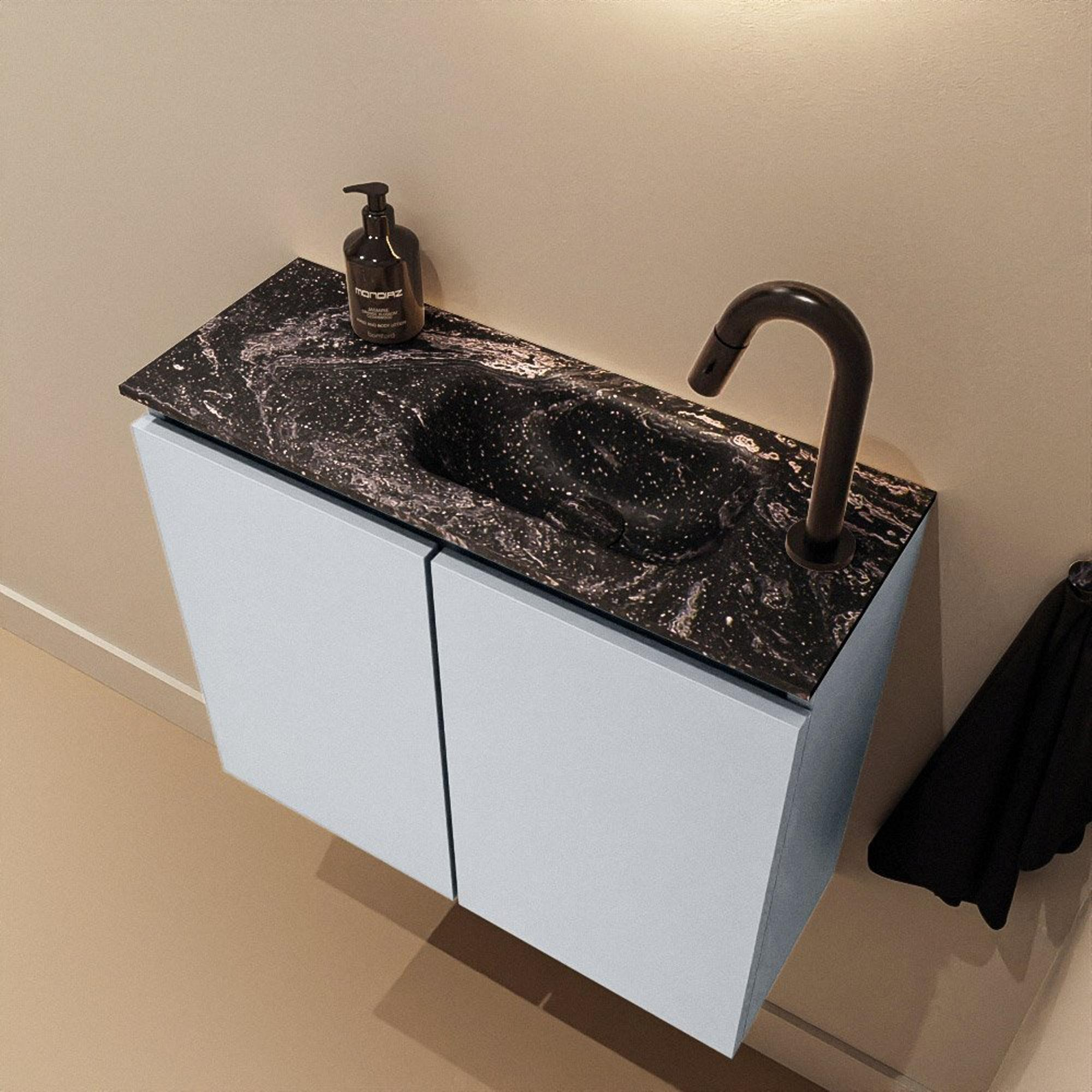 MONDIAZ TURE-DLUX 60cm toiletmeubel Clay. EDEN wastafel Lava positie rechts. Met 1 kraangat.