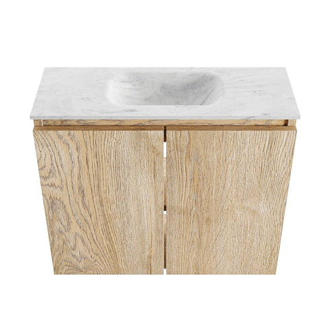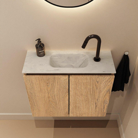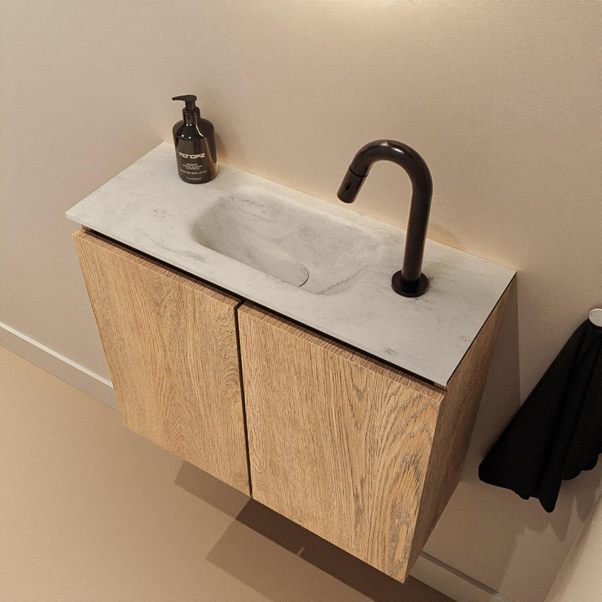 MONDIAZ TURE-DLUX 60cm toiletmeubel Washed Oak. EDEN wastafel Opalo positie midden. Met 1 kraangat.
