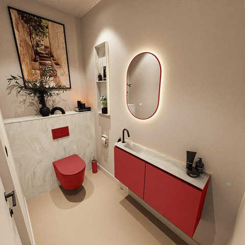 MONDIAZ TURE-DLUX 100cm toiletmeubel Fire. EDEN wastafel Ostra positie links. Met 1 kraangat.