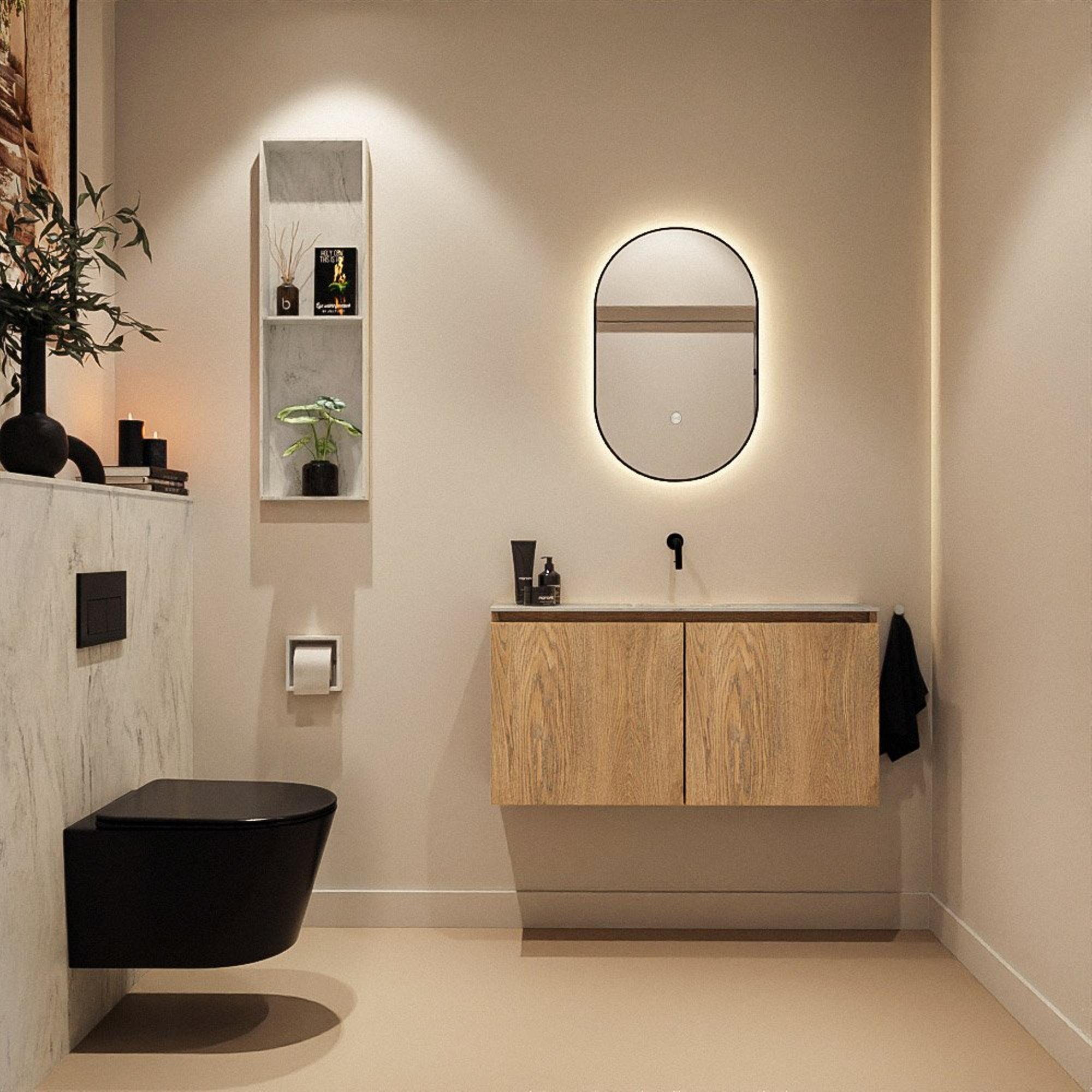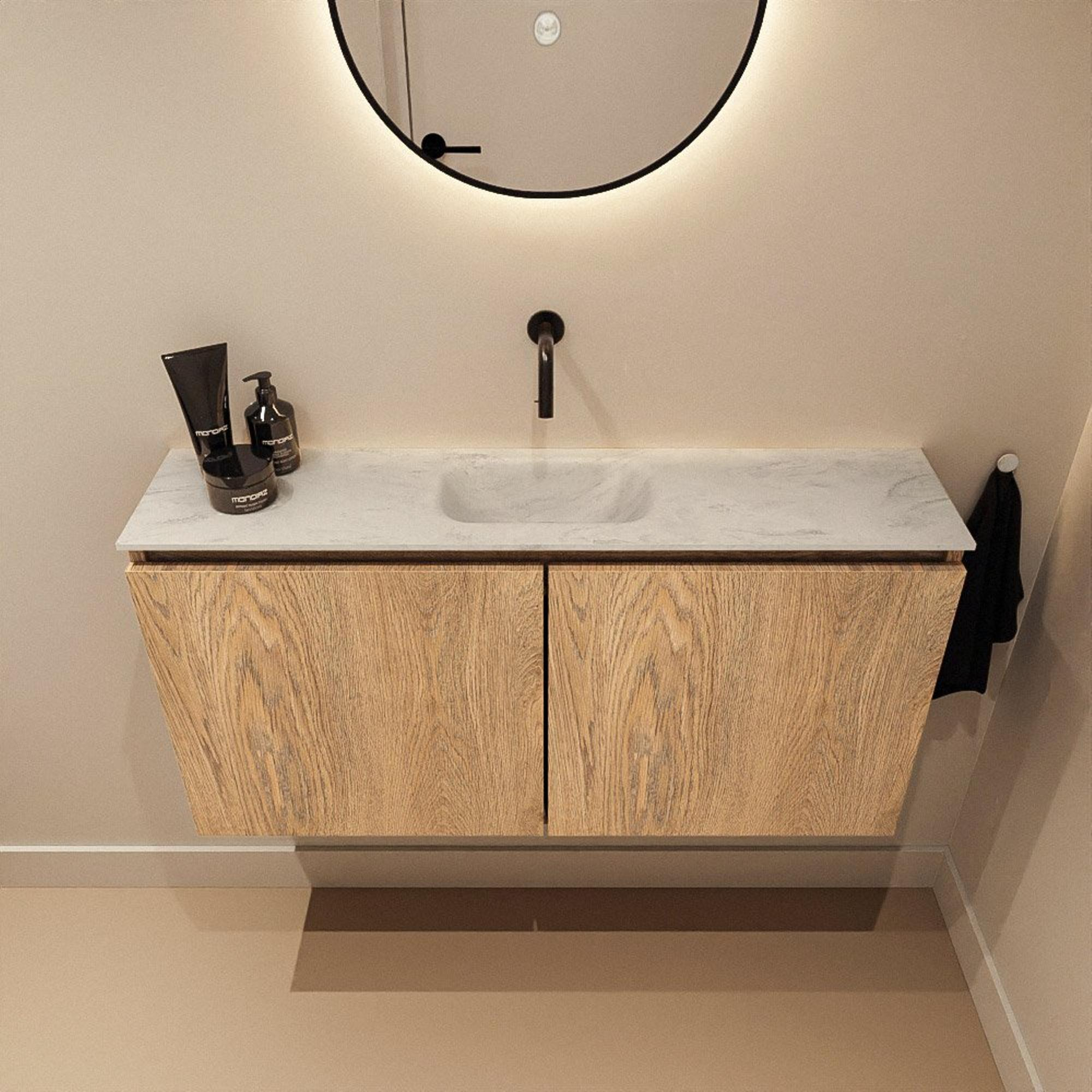 MONDIAZ TURE-DLUX 100cm toiletmeubel Washed Oak. EDEN wastafel Opalo positie midden. Zonder kraangat.