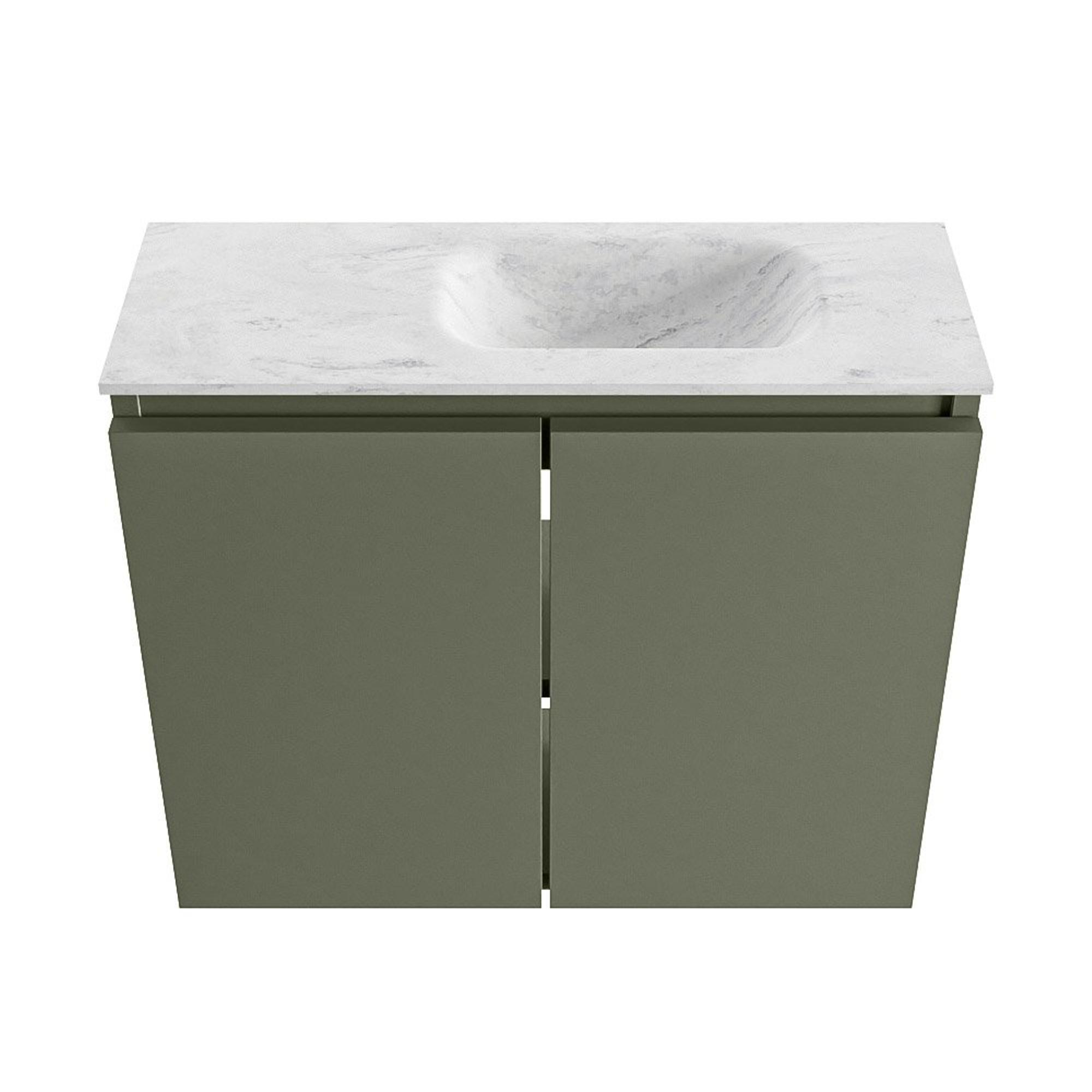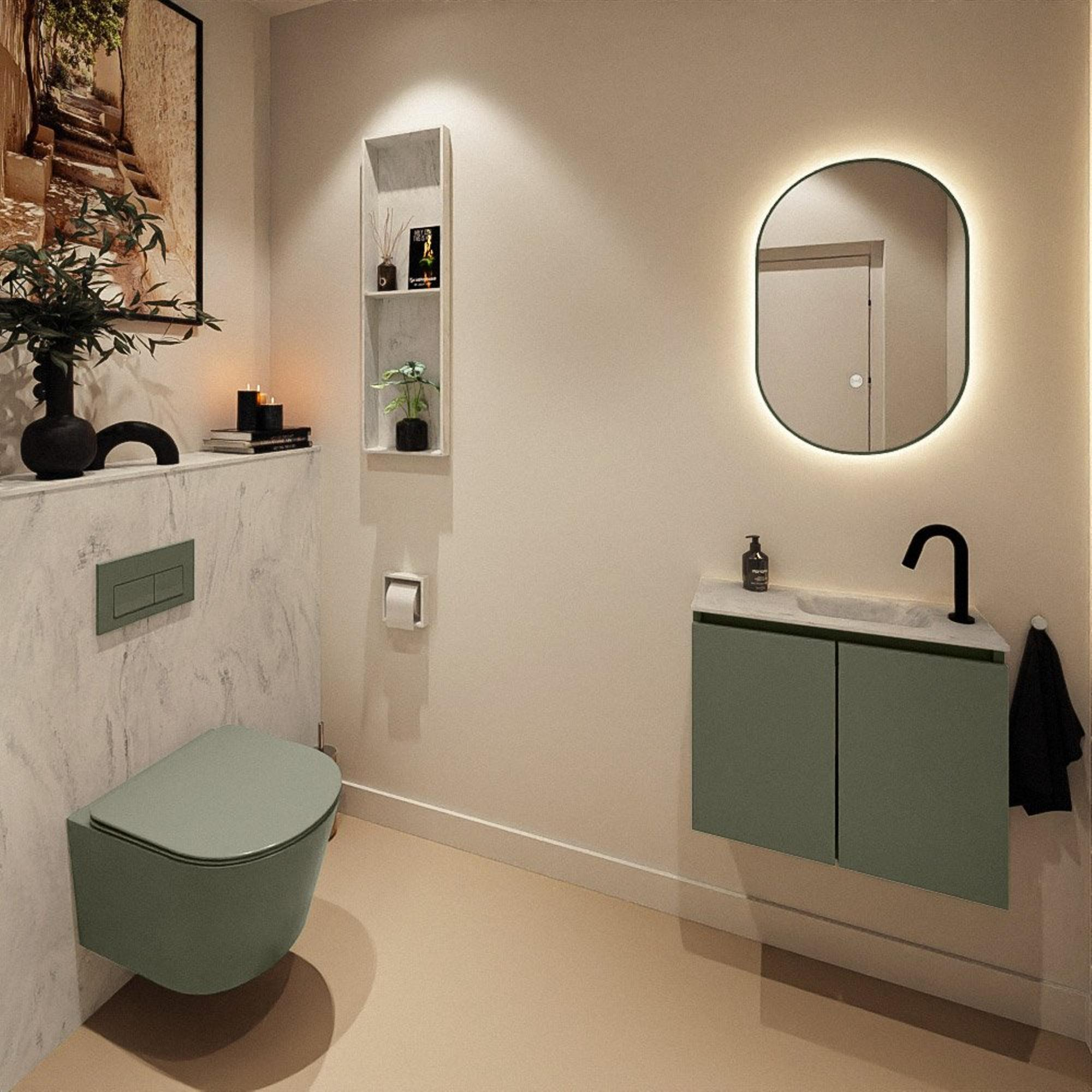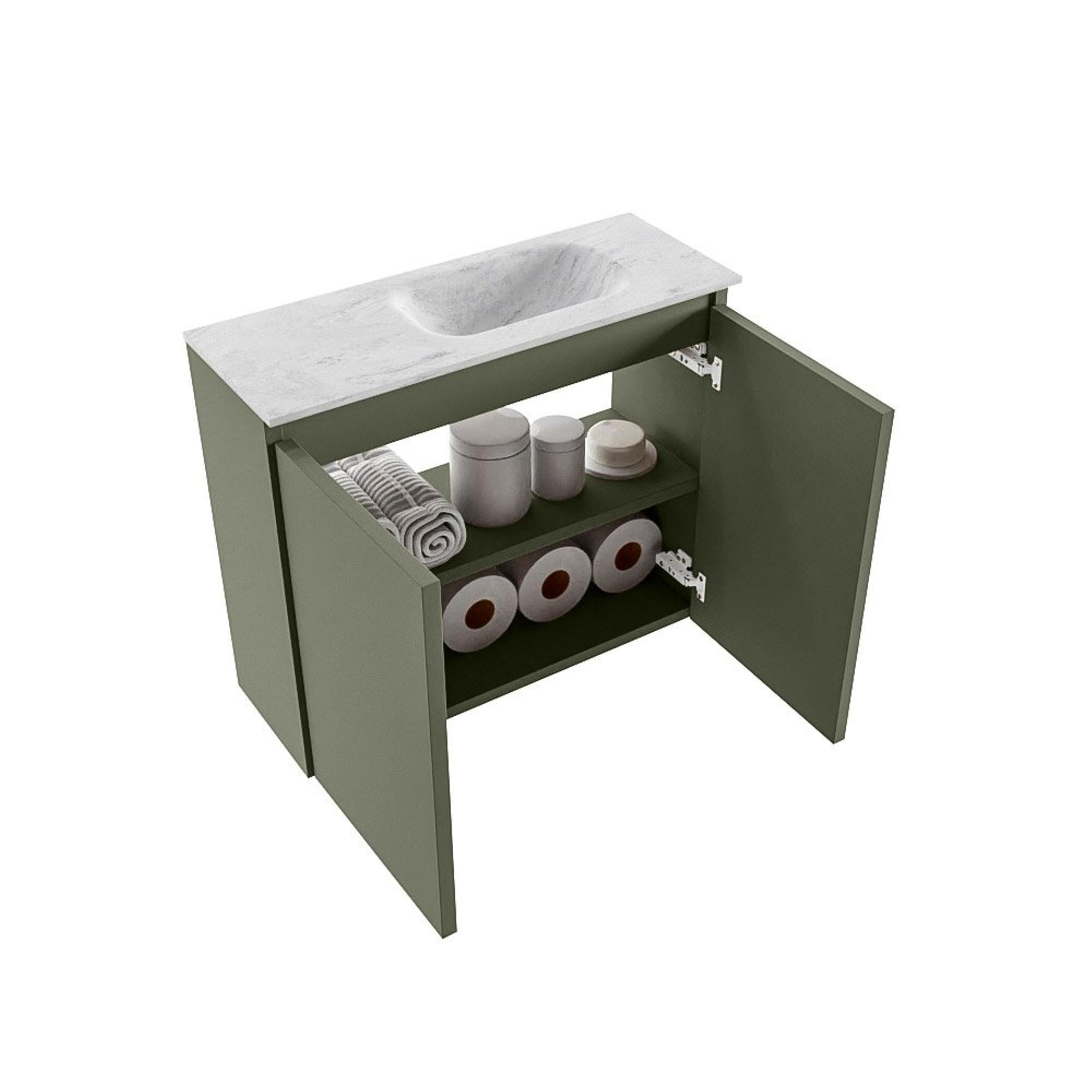 MONDIAZ TURE-DLUX 60cm toiletmeubel Army. EDEN wastafel Opalo positie rechts. Met 1 kraangat.