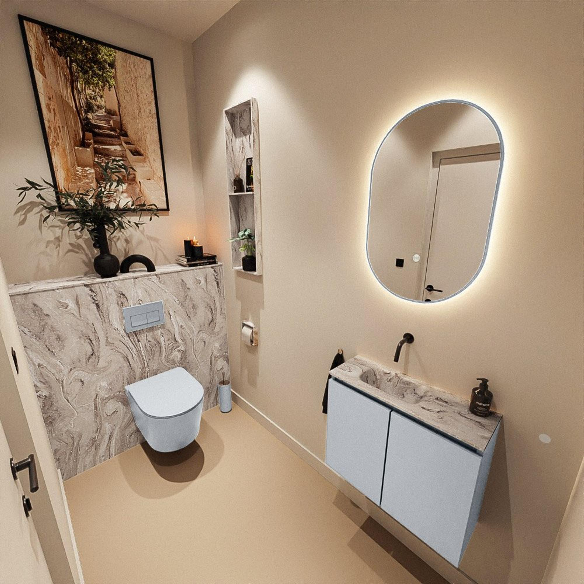MONDIAZ TURE-DLUX 60cm toiletmeubel Clay. EDEN wastafel Glace positie links. Zonder kraangat.