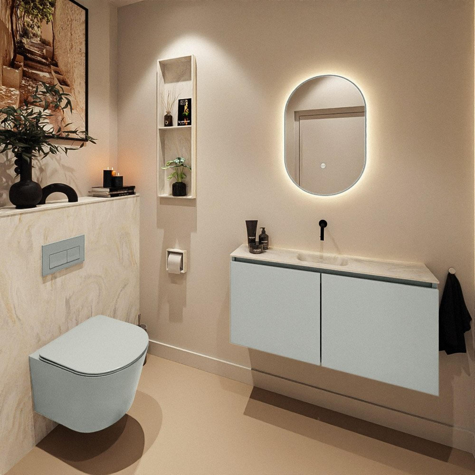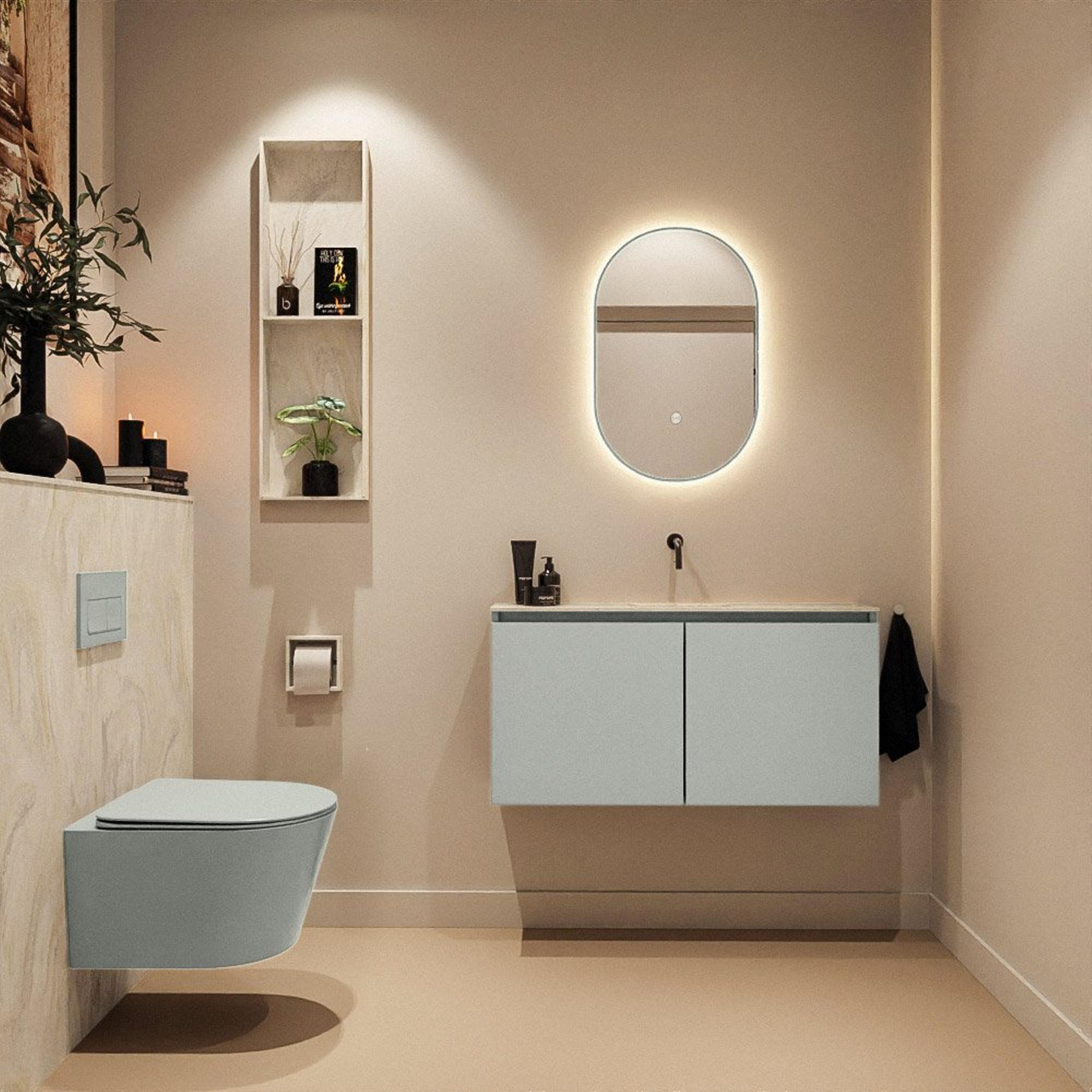 MONDIAZ TURE-DLUX 100cm toiletmeubel Greey. EDEN wastafel Ostra positie midden. Zonder kraangat.