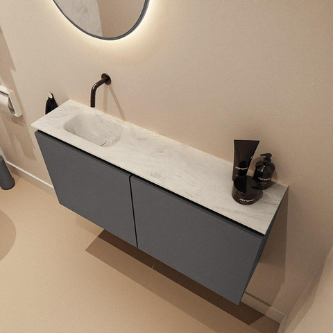 MONDIAZ TURE-DLUX 100cm toiletmeubel Dark Grey. EDEN wastafel Opalo positie links. Zonder kraangat.